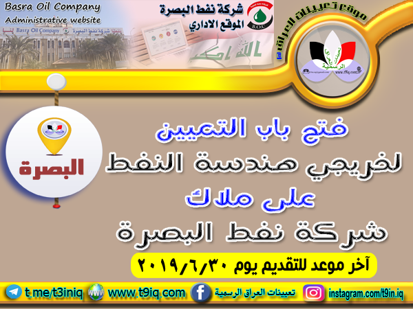 تعلن شركة نفط البصرة عن فتح باب التعيين على الملاك الدائم للشركة لخريجي هندسة النفط وفقاً لاستمارة التقديم المدرجة أدناه :-