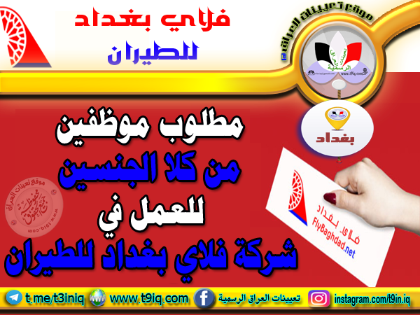 مطلوب موظفين للعمل في شركة فلاي بغداد للطيران وفقاً الشروط الموضحة أدناه :-