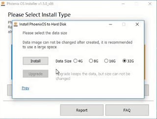 ثم تختار المساحة التي تريد ان تعطيها لنظام Phoenix OS، يفضل أن تختار أكبر مساحة لإعطاء النظام المزيد من السرعة والاداة في تشغيل النظام بدون مشاكل، ثم أنقر على Install للبدء في التثبيت.