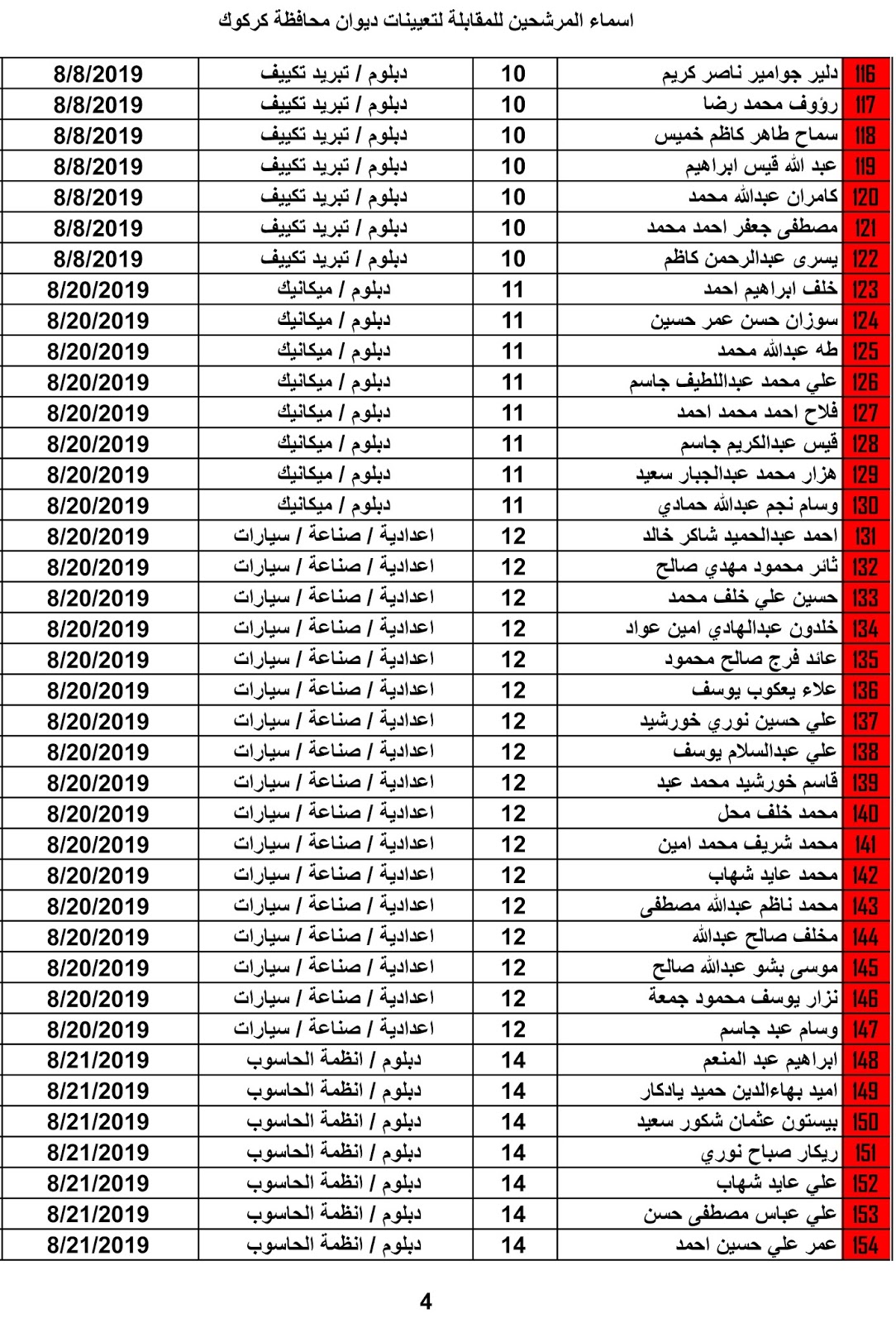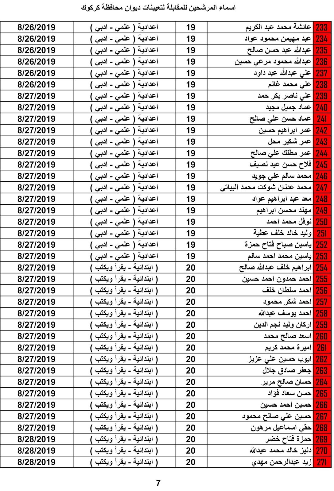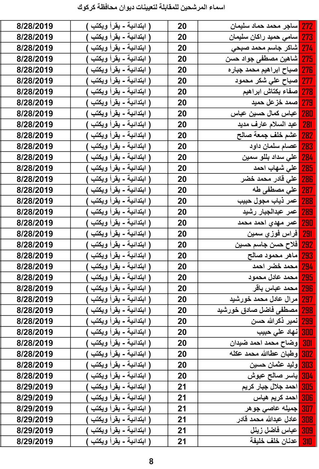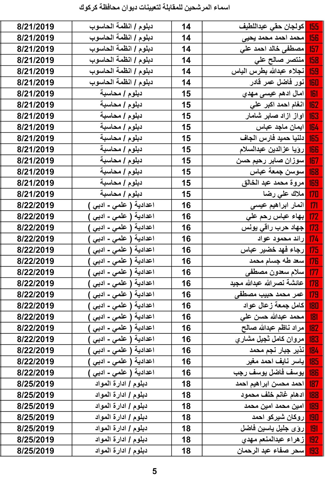 يعلن ديوان محافظة كركوك عن اسماء المدعوين للمقابلة ( الوجبة الثانية ) المتقدمين على الدرجات الوظيفية لملاك الديوان وكما مدرجة مع المواعيد في الجداول أدناه :-