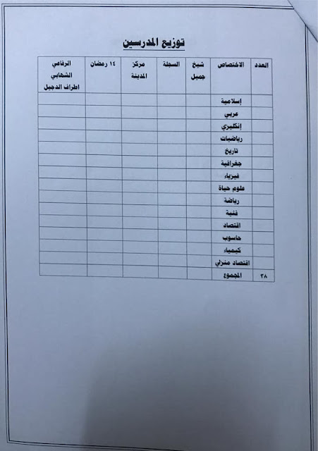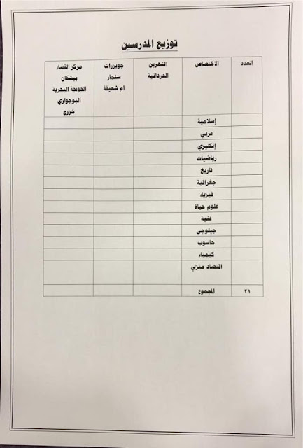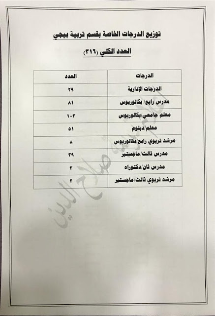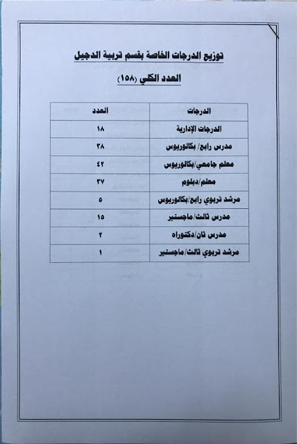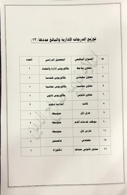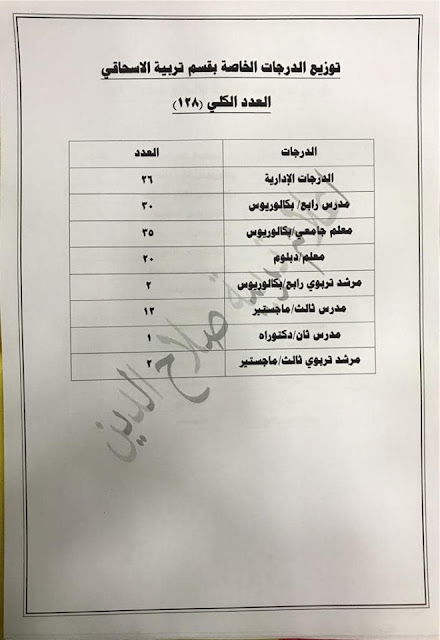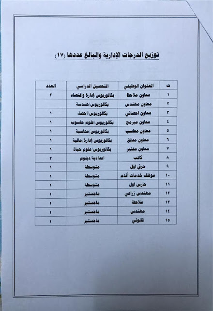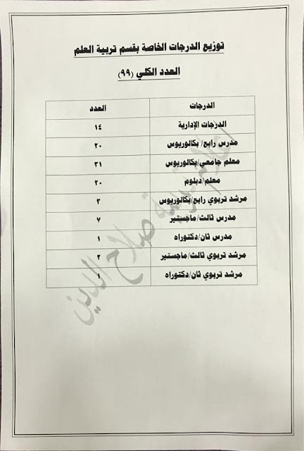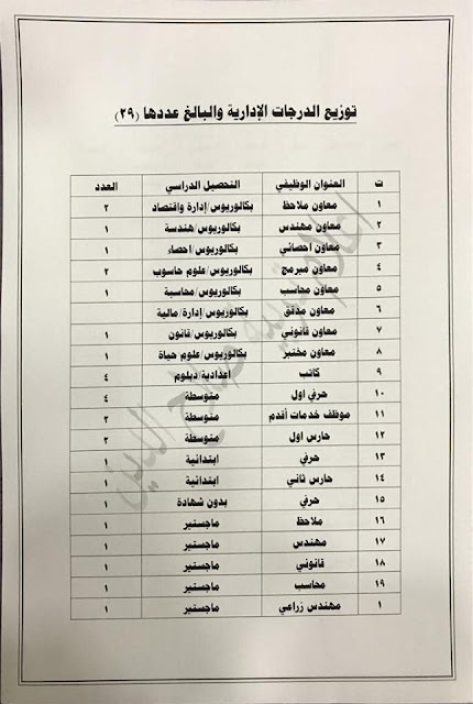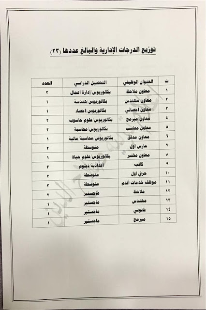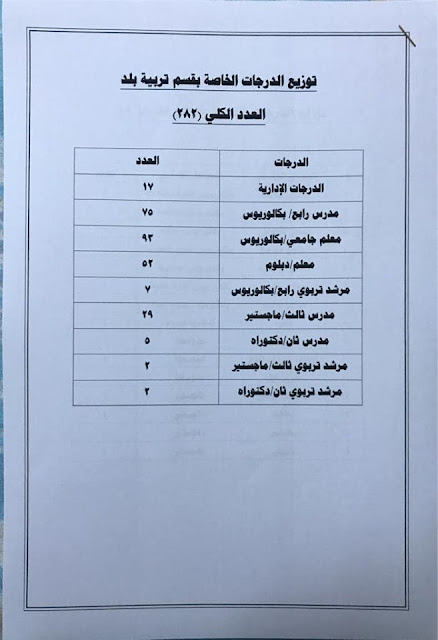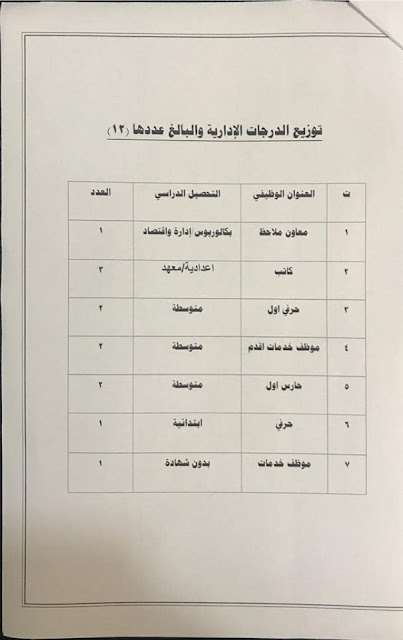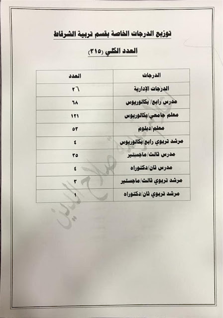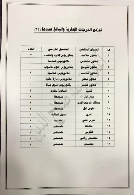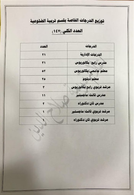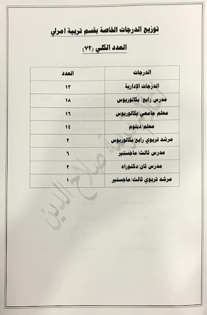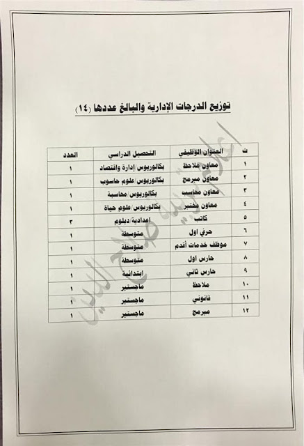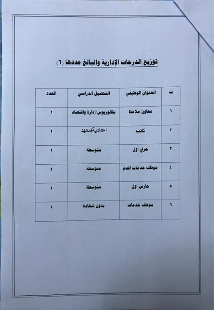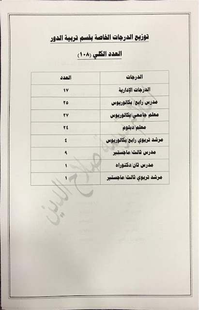 * الدرجات المخصصه لاقسام ديوان المديريه كافة/