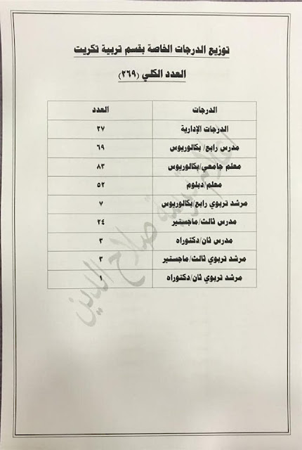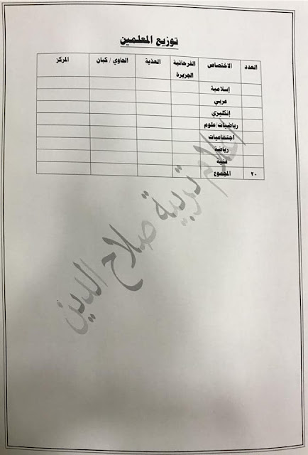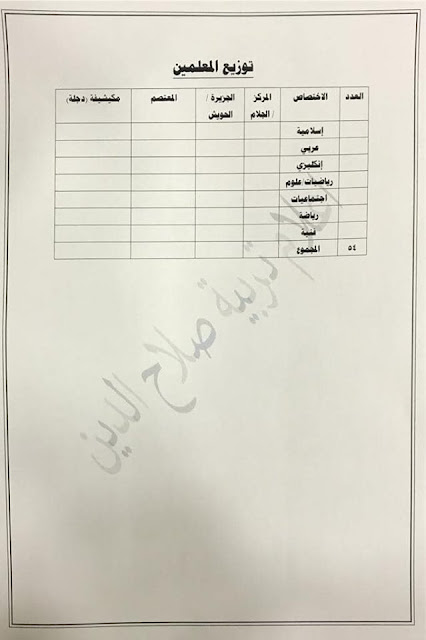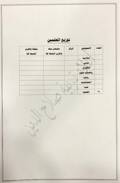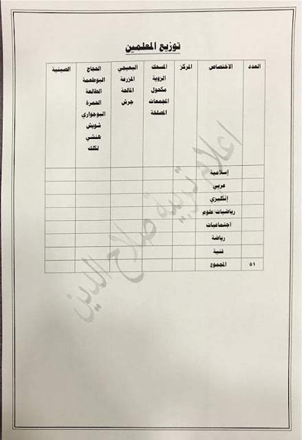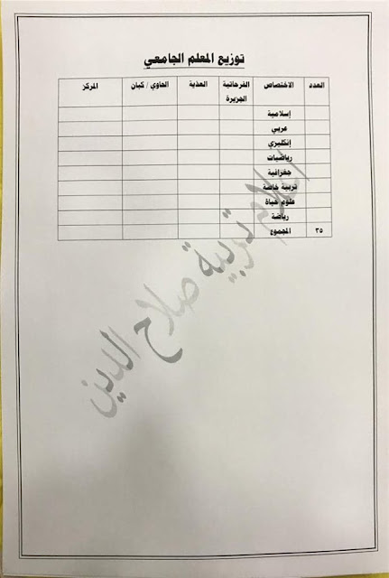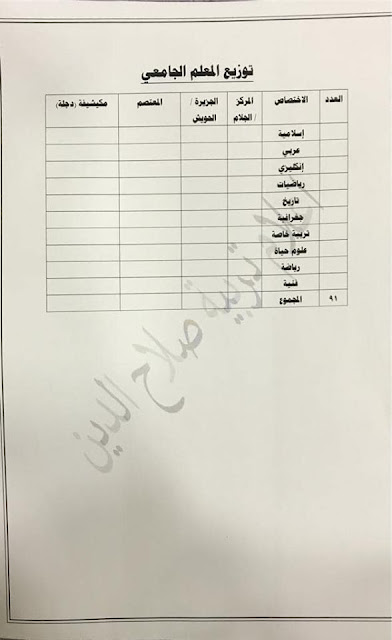 تعلن مديرية تربية صلاح الدين عن فتح باب التعيينات على حركة الملاك للدرجات الوظيفية والشروط والضوابط الموضحة في المرفقات أدناه :-
