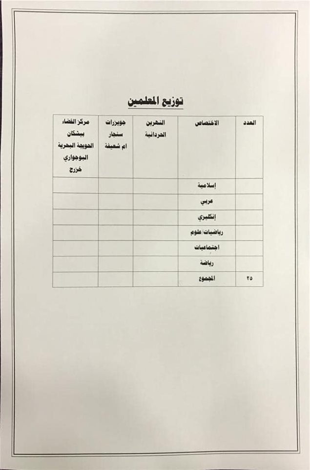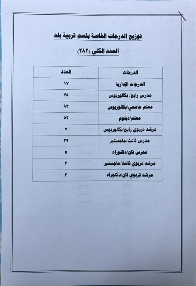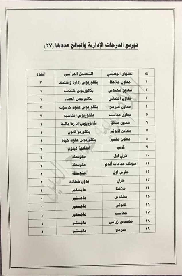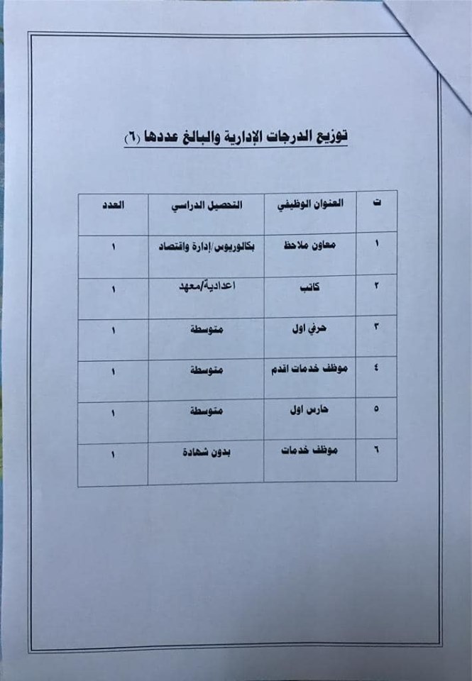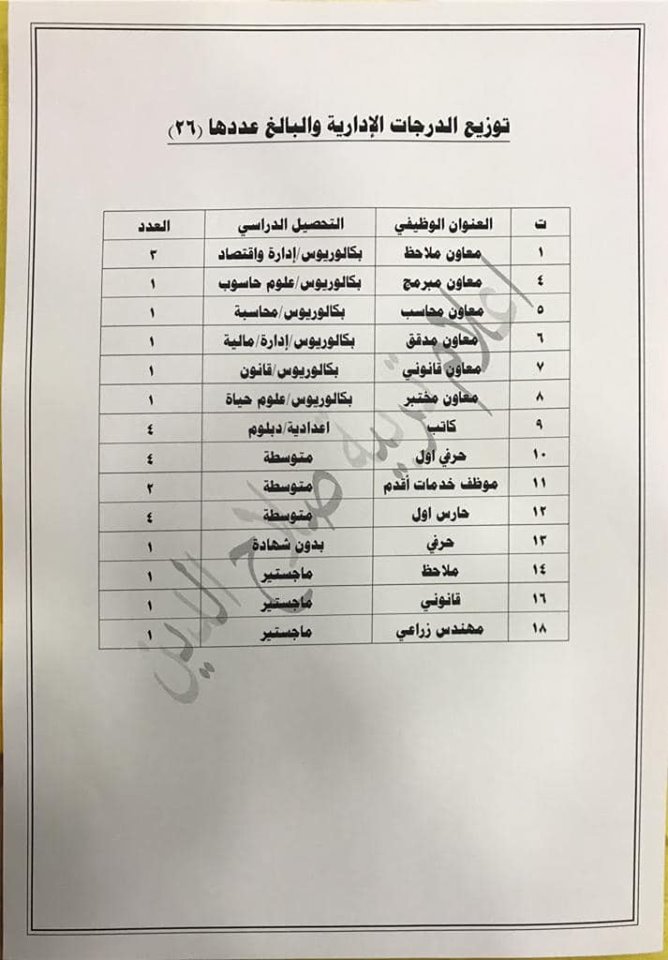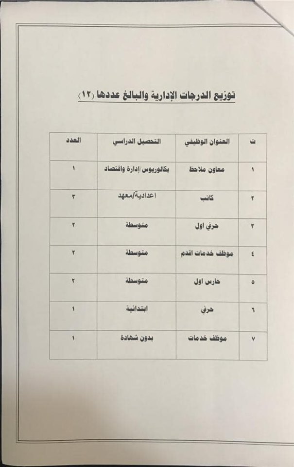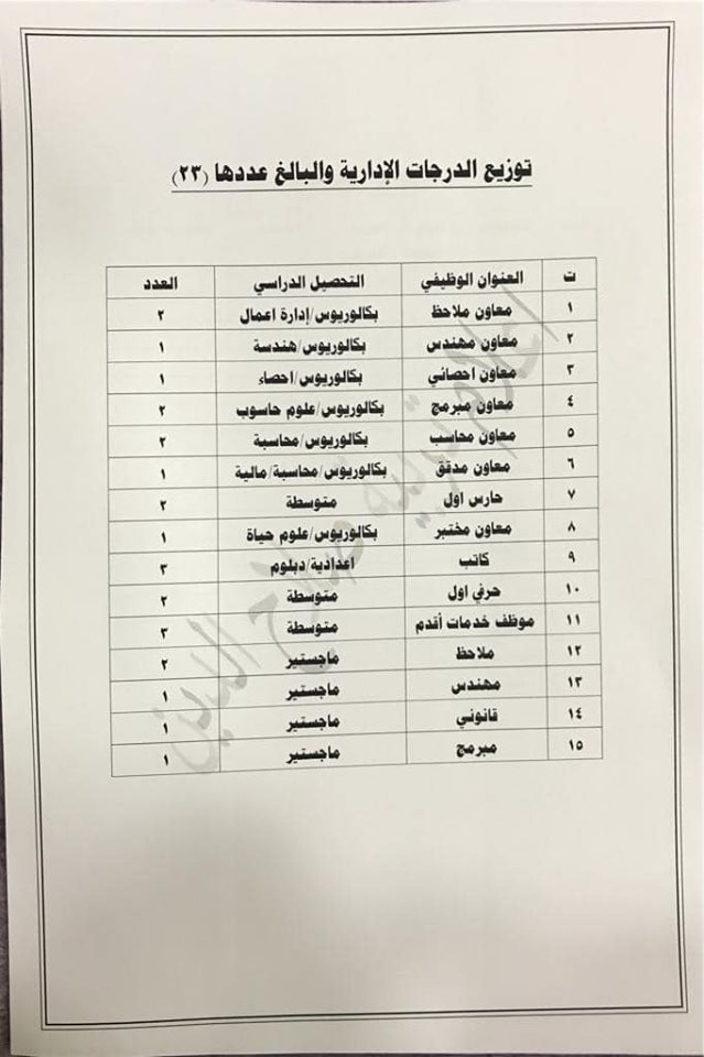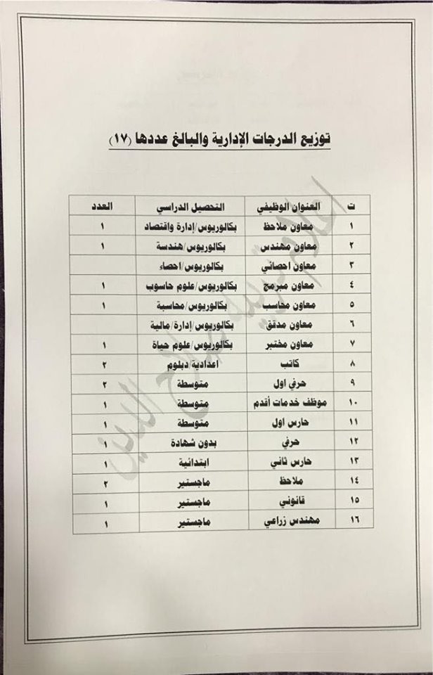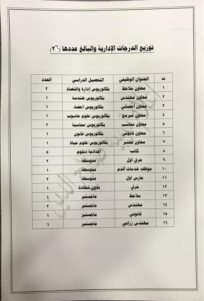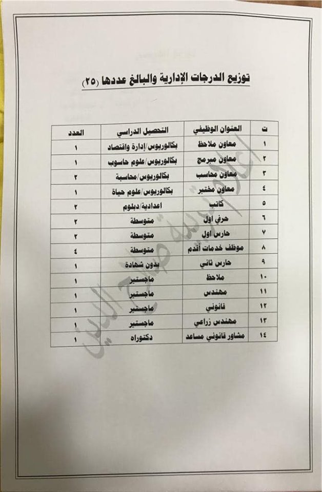 * الدرجات المخصصه لاقسام ديوان المديريه كافة/