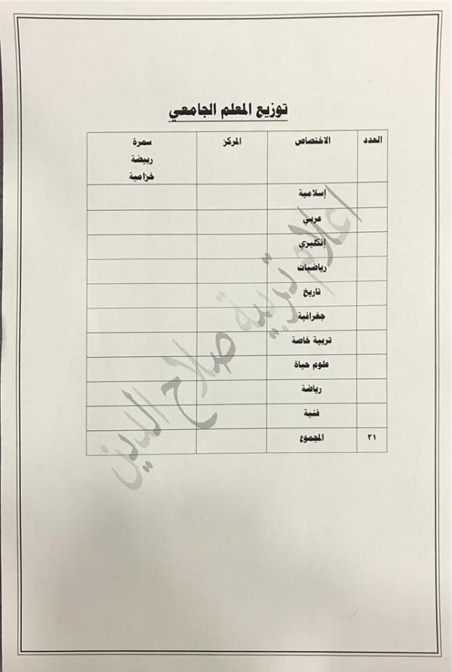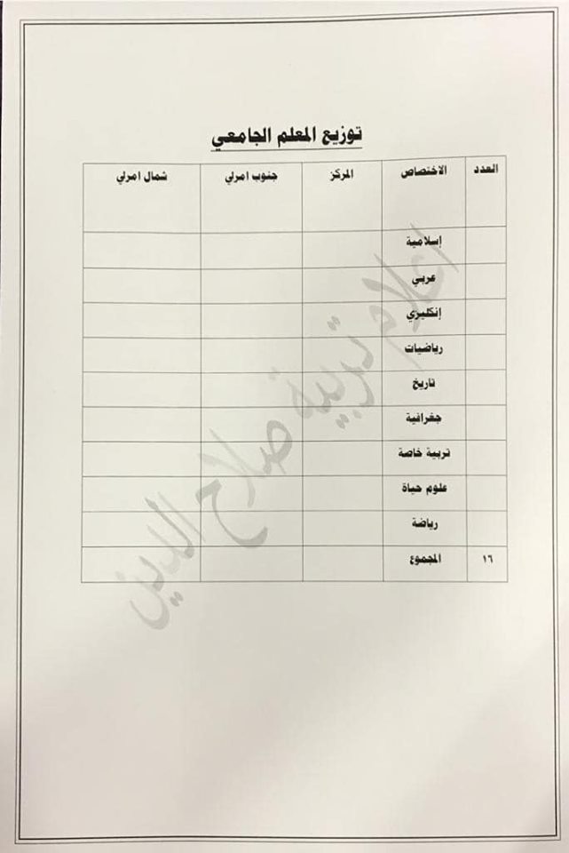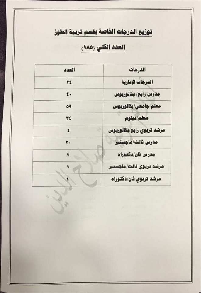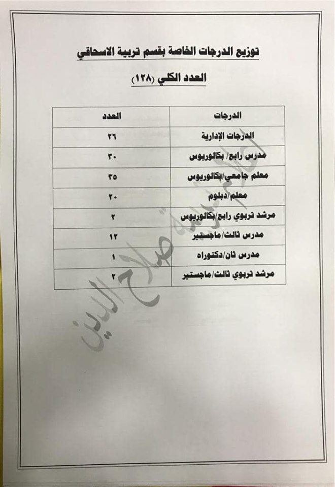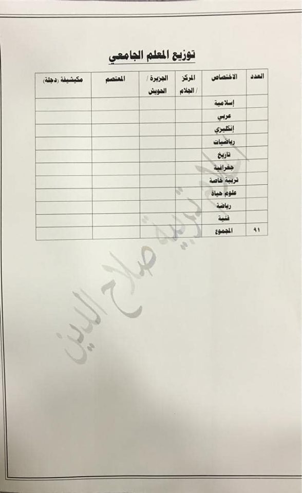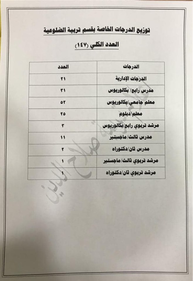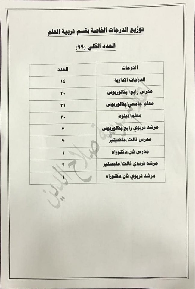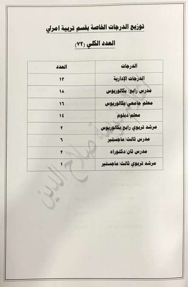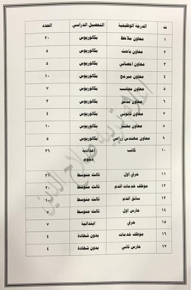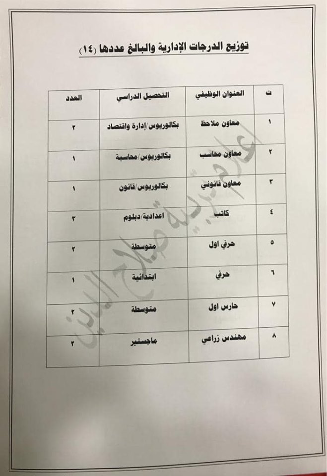 تعلن مديرية تربية صلاح الدين عن فتح باب التعيينات على حركة الملاك للدرجات الوظيفية والشروط والضوابط الموضحة في المرفقات أدناه :-