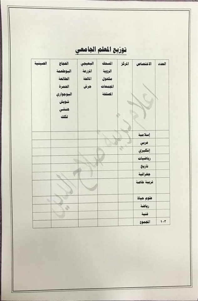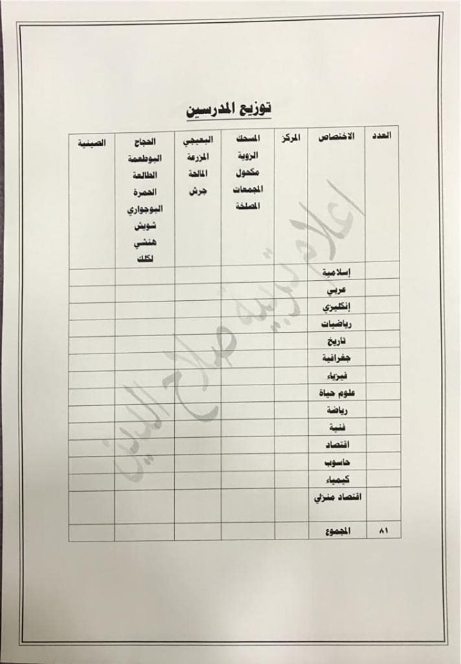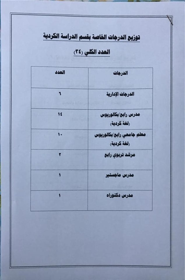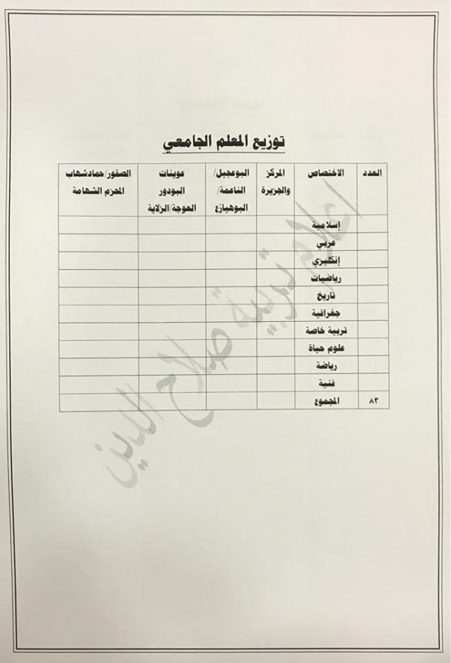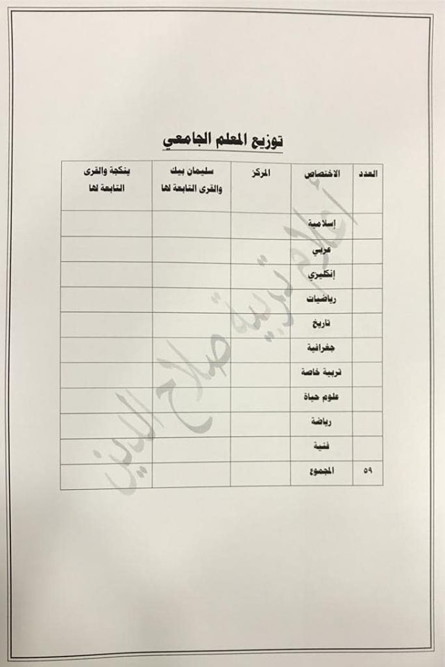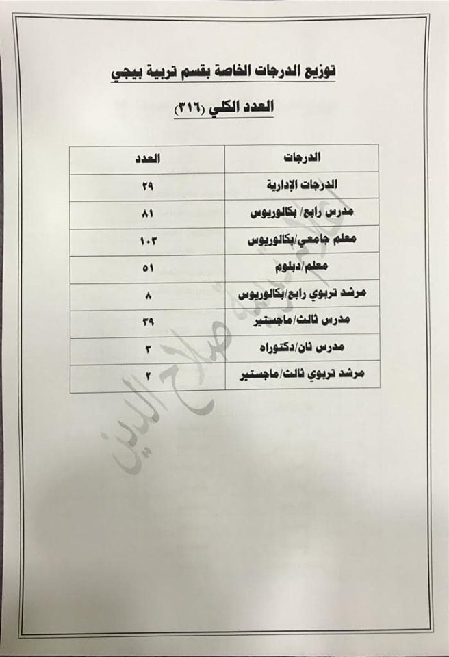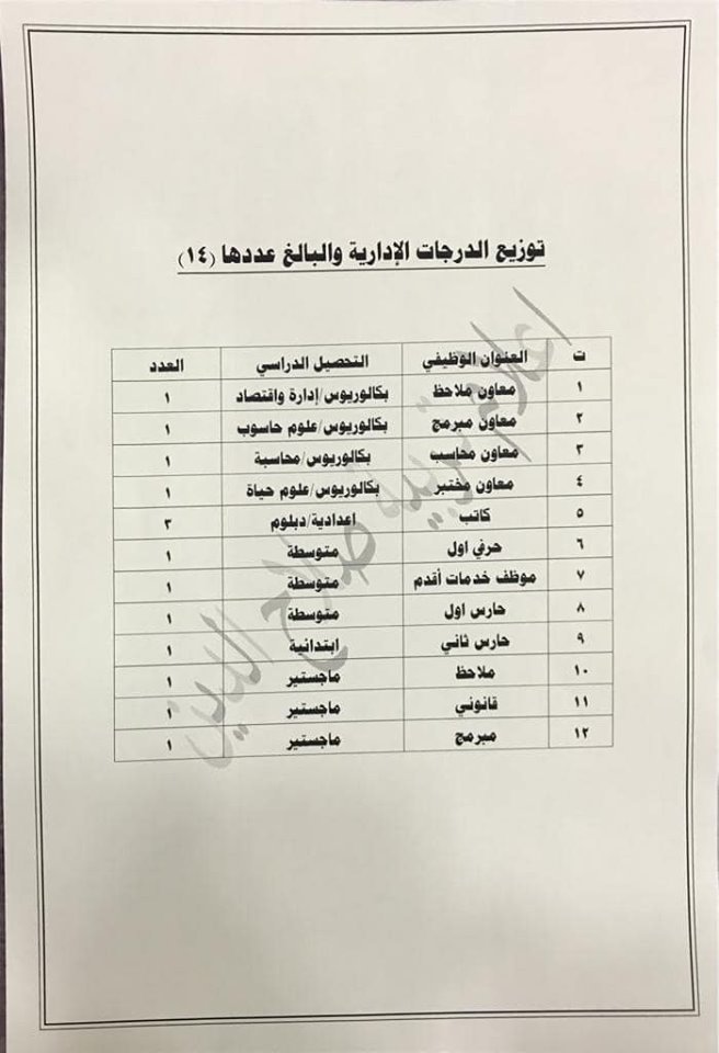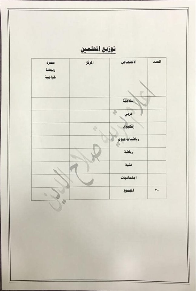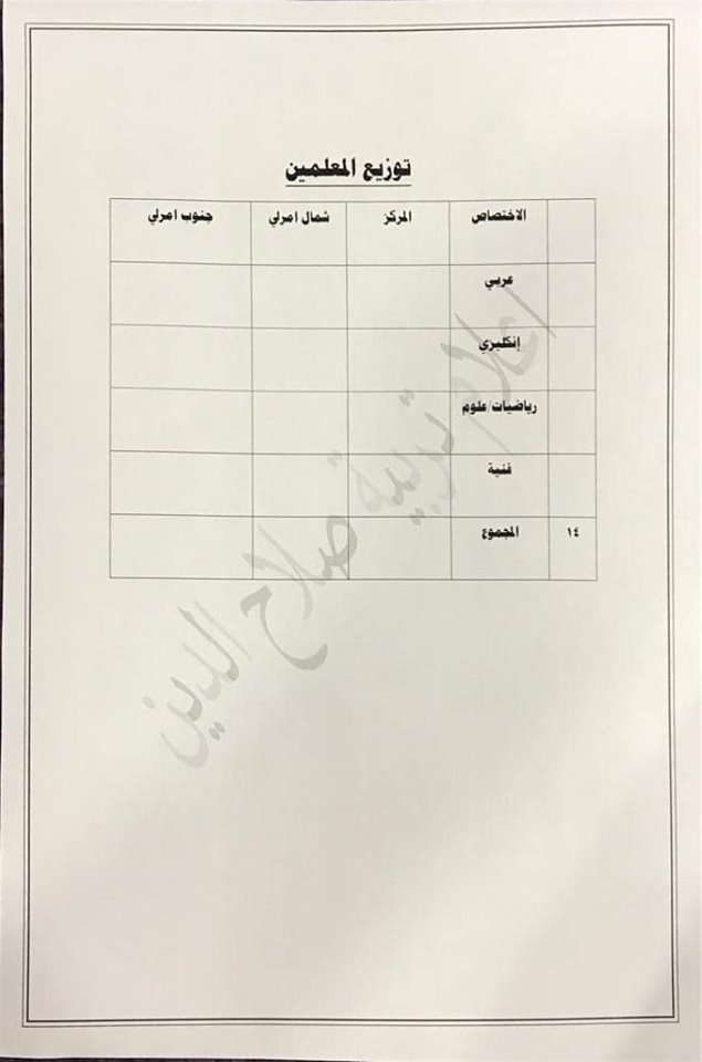 تعلن مديرية تربية صلاح الدين عن فتح باب التعيينات على حركة الملاك للدرجات الوظيفية والشروط والضوابط الموضحة في المرفقات أدناه :-