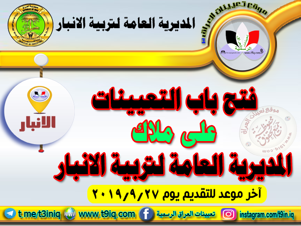 تعلن مديرية تربية الانبار عن فتح باب التعيين على ملاك المديرية وفقاً للتعليمات واستمارة التقديم المدرجة أدناه :-