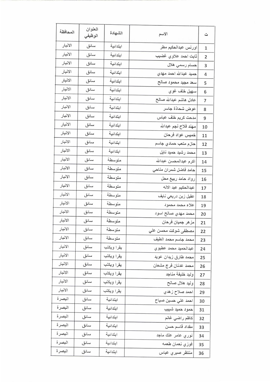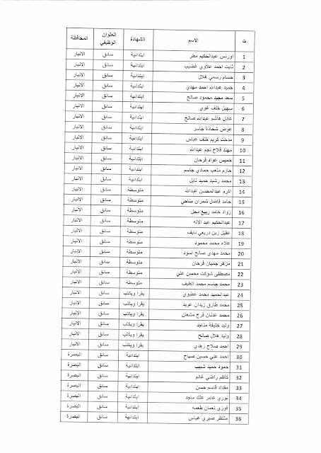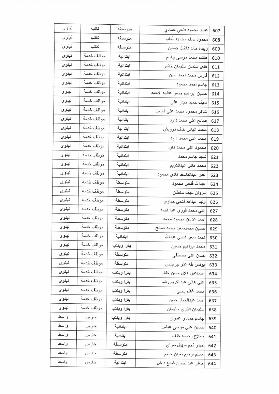 تعلن وزارة التخطيط عن اسماء وموعد مقابلة المتقدمين للتعيين على ملاك وزارة التخطيط بصفة ( حارس - موظف خدمة - حرفي - سائق ) والمدرجة في الجداول مع موعد المقابلات أدناه :-
