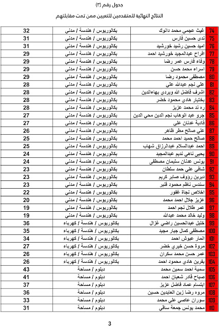 يعلن ديوان محافظة كركوك عن اسماء المرشحين للتعيين واسماء الاحتياط والنتائج النهائية للمتقدميين للدرجات الوظيفية المعلن عنها سابقاً على ملاك الديوان وكما مدرجة في المرفقات أدناه :-