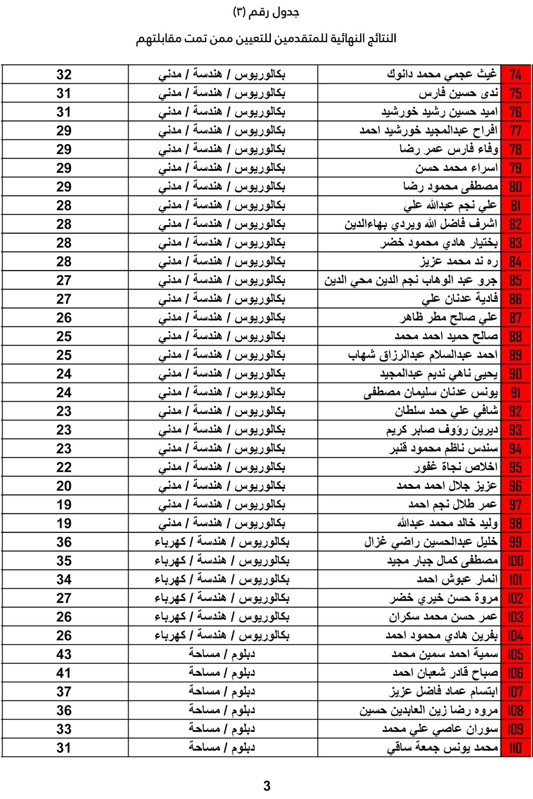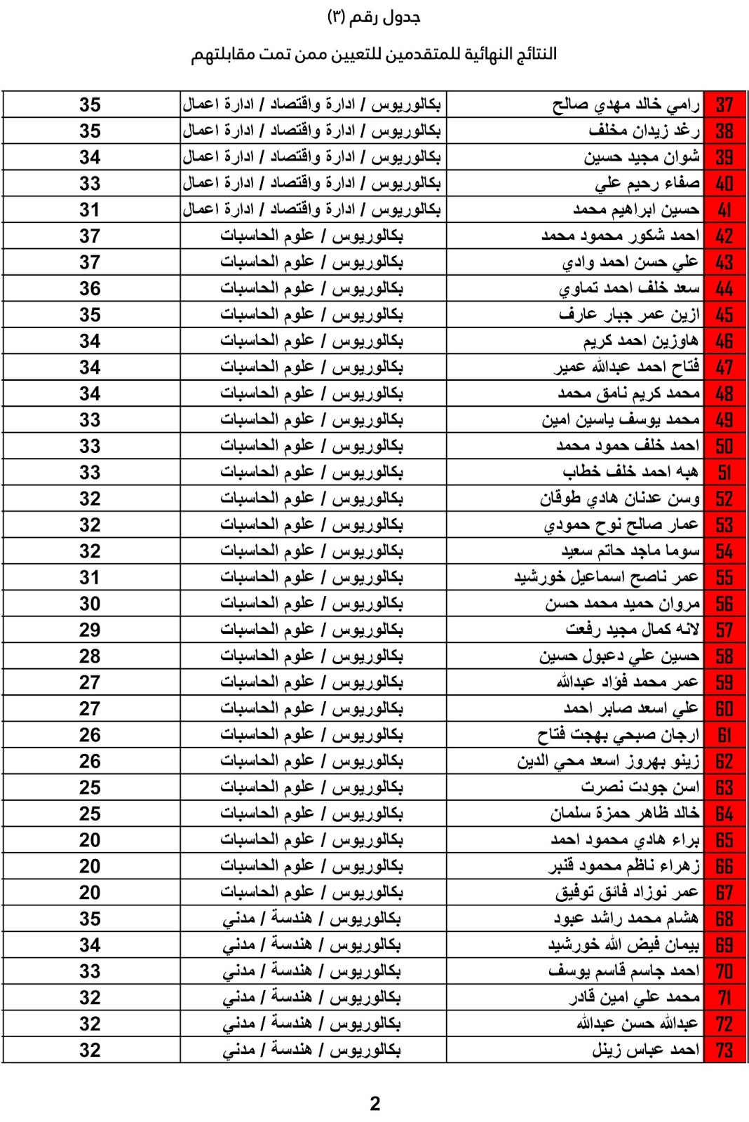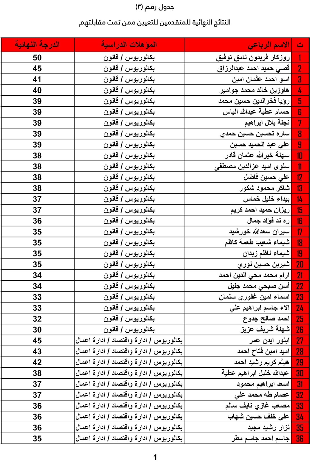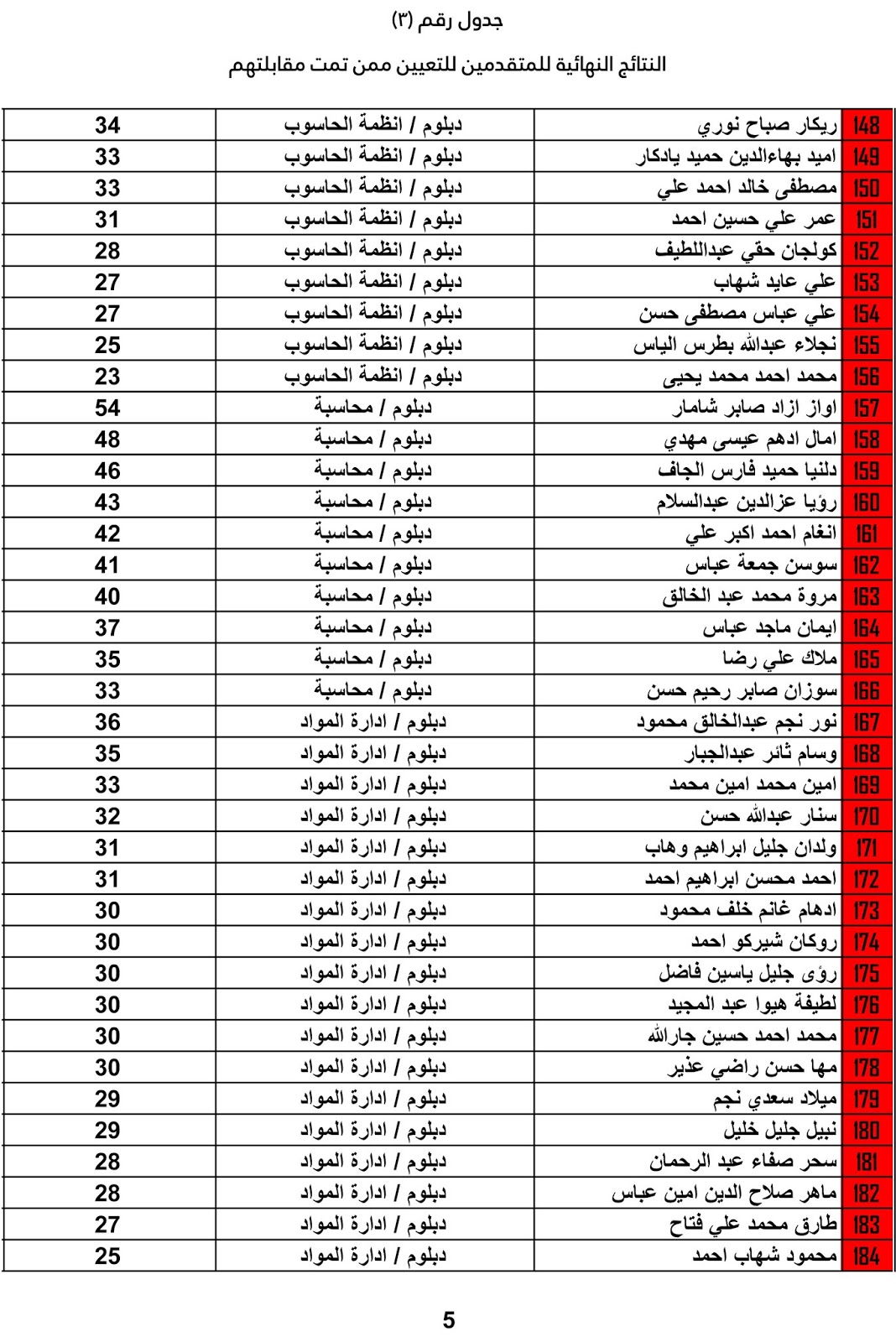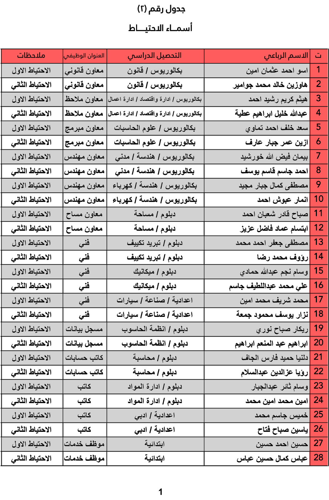 يعلن ديوان محافظة كركوك عن اسماء المرشحين للتعيين واسماء الاحتياط والنتائج النهائية للمتقدميين للدرجات الوظيفية المعلن عنها سابقاً على ملاك الديوان وكما مدرجة في المرفقات أدناه :-