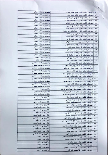 تعلن وزارة الاعمار والاسكان والبلديات والاشغال العامة عن اسماء المدعوين للمقابلة ( الوجبة الخامسة ) من حملة شهادة (البكالوريوس) والمدرجة اسماؤهم واختصاصاتهم في الجدول والتفاصيل ادناه :-