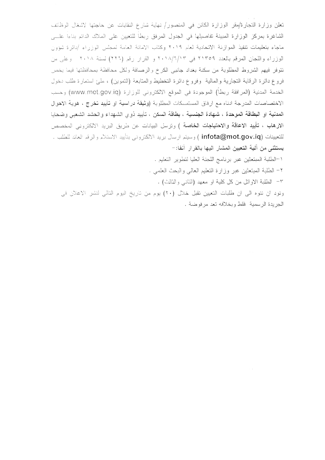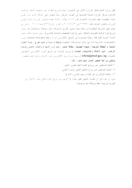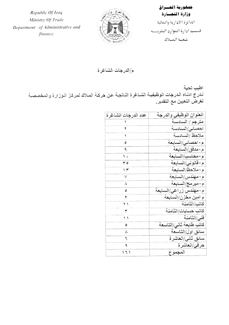 تعلن وزارة التجارة / مقر الوزارة عن فتح باب التعيينات للدرجات الوظيفية الشاغرة على الملاك والمدرجة تفاصيلها مع استمارة التقديم أدناه :-