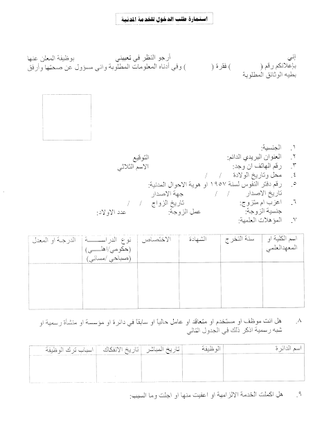 1. سحب استمارة طلب التعيين المرفقة في الصور أدناه واملائها باليد.
