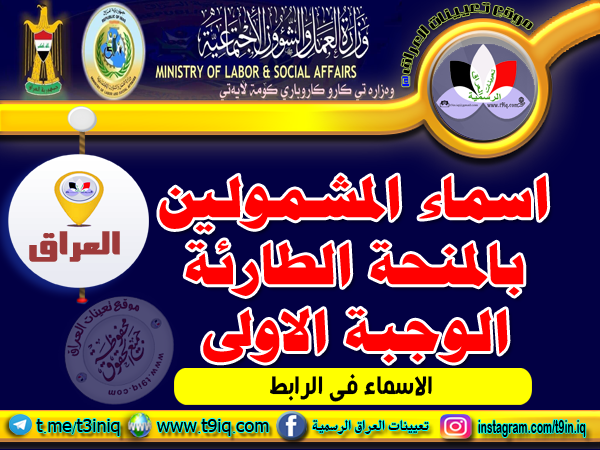 تعلن وزارة العمل والشؤون الاجتماعية عن اسماء المشمولين بالمنحة الطارئة الوجبة الاولى وكما مدرجة ربطاً ادناه :-
