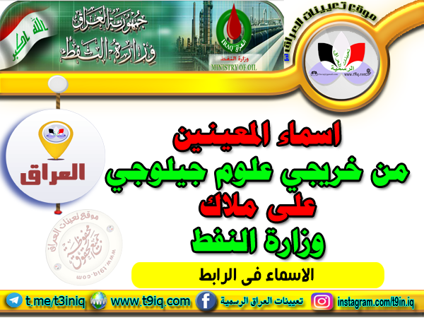 تعلن وزارة النفط عن اسماء المعينين من خريجي علوم جيلوجي على ملاك وزارة النفط المدرجة ربطاً أدناه :-