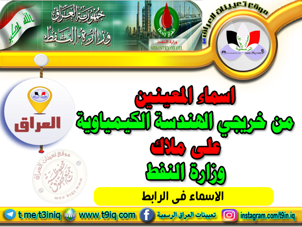تعلن وزارة النفط عن اسماء المعينين من خريجي الهندسة الكيمياوية على ملاك وزارة النفط المدرجة ربطاً أدناه :-