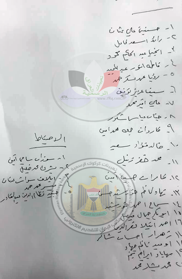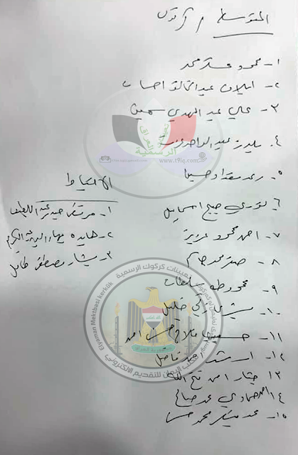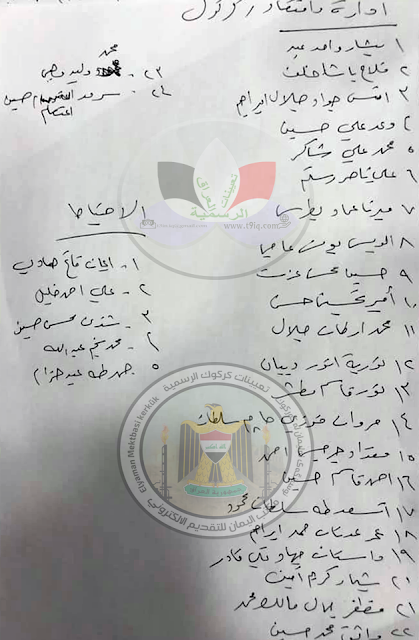 تعلن مديرية توزيع كهرباء كركوك عن اسماء الفائزين بالقرعة كأجراء يوميين في جميع مديرياتها وكما مدرجة في المرفقات أدناه :-