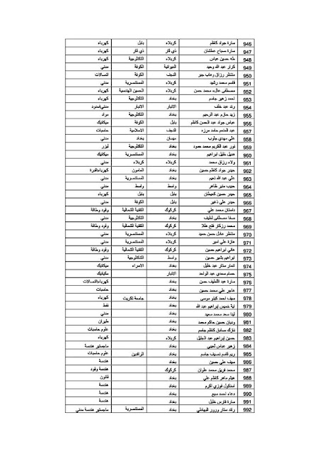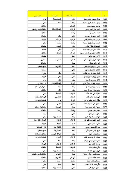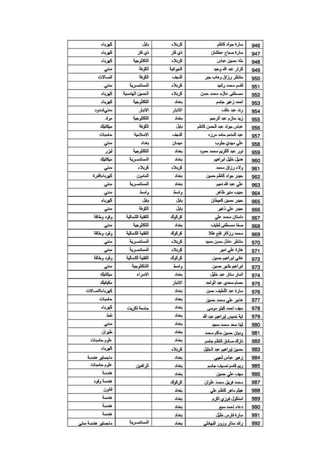 يعلن مكتب رئيس الوزراء عن قوائم الوجبة العاشرة لخريجي كليات الهندسة الذين تم تعيينهم على الملاك المدني الدائم في وزارة الدفاع وكما مدرجة في القوائم أدناه :-