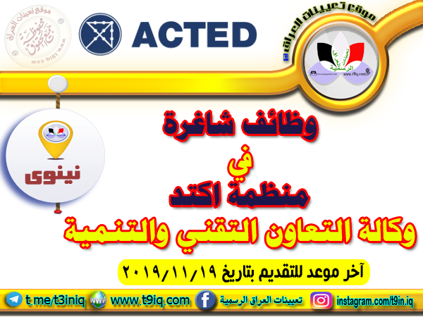 تعلن منظمة اكتد ( وكالة التعاون التقني والتنمية ) عن توفر وظائف شاغرة لديها وفقاَ للمعلومات المدرجة أدناه :-