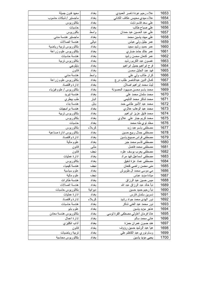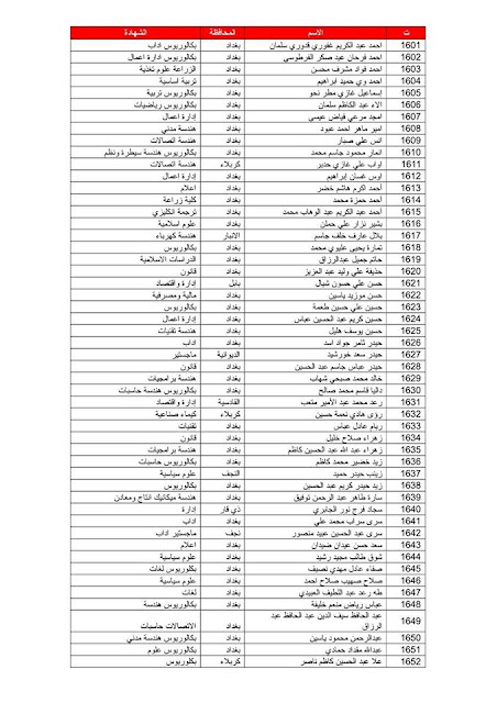 يعلن مكتب رئيس الوزراء عن قوائم الوجبة السابعة عشر للخريجين بمختلف الاختصاصات الذين تم تعيينهم على الملاك المدني الدائم في وزارة الدفاع وكما مدرجة في القوائم أدناه :-