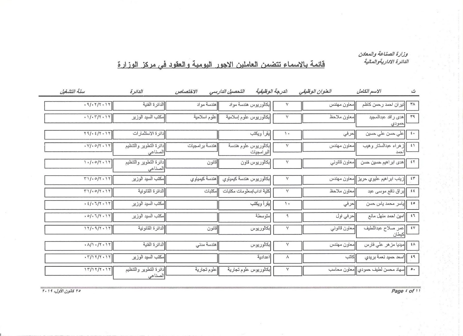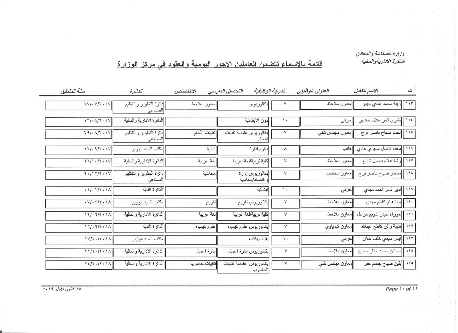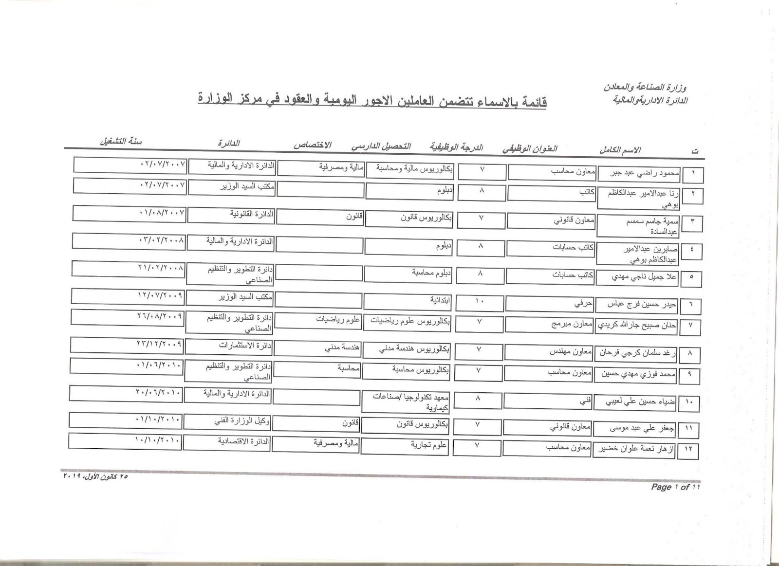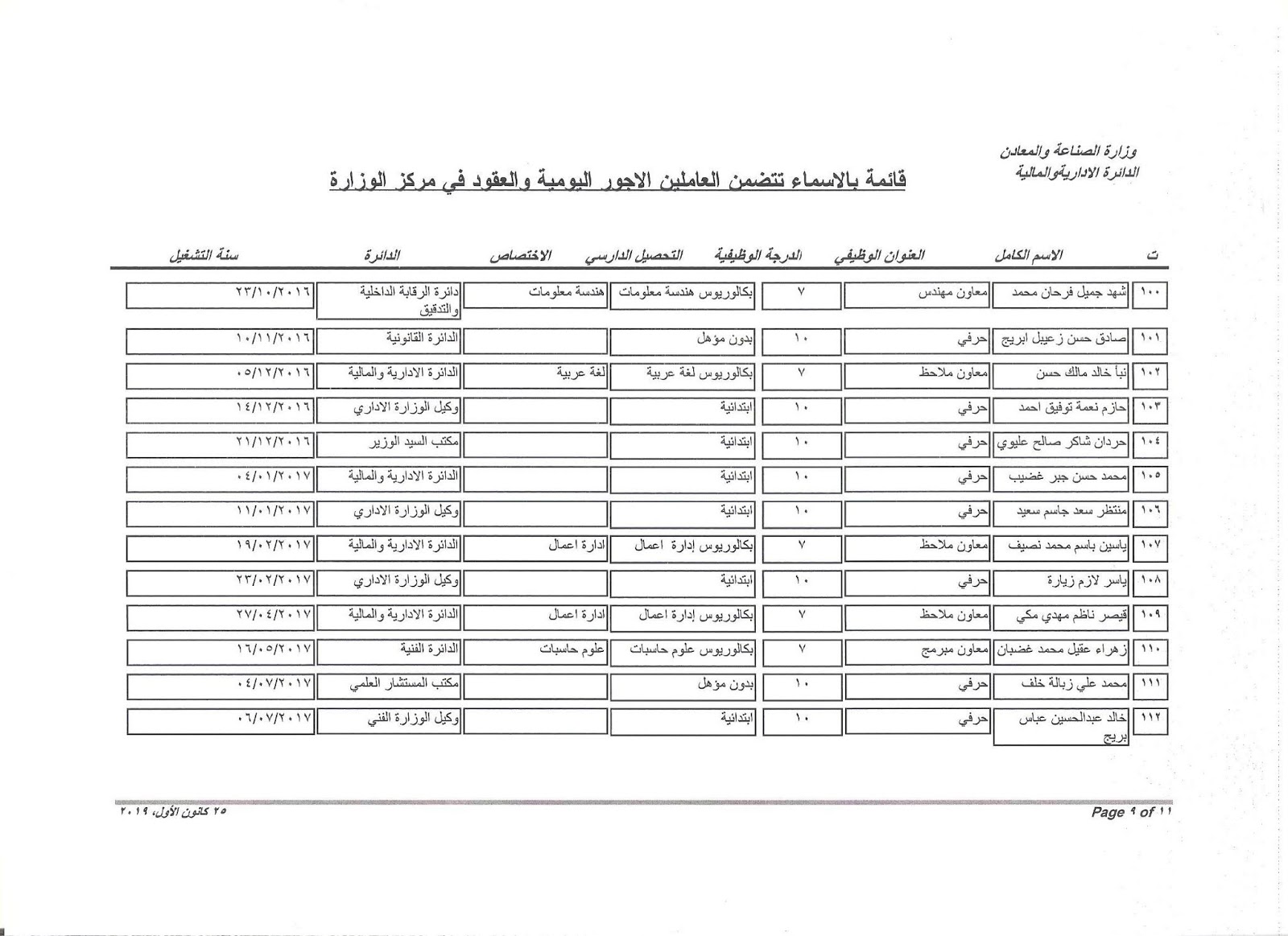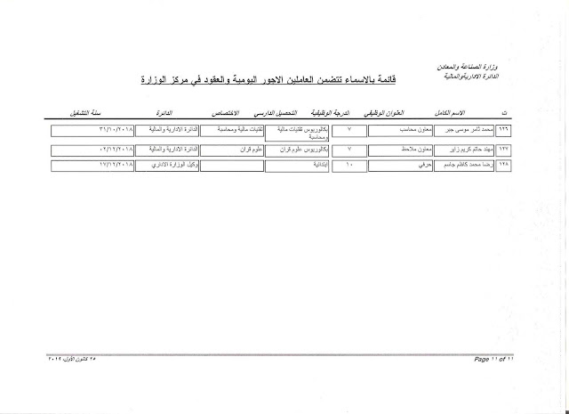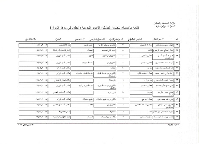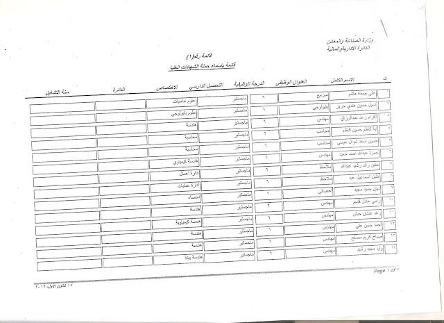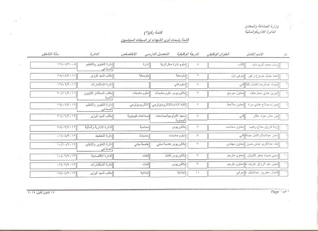 تعلن وزارة الصناعة والمعادن عن اسماء الفائزين بالتعيين على الملاك للدرجات الوظيفية التي اعلن عنها بتاريخ 11/3/2019 ولغاية 30/3/2019 وكما مدرجة في المرفقات أدناه :-