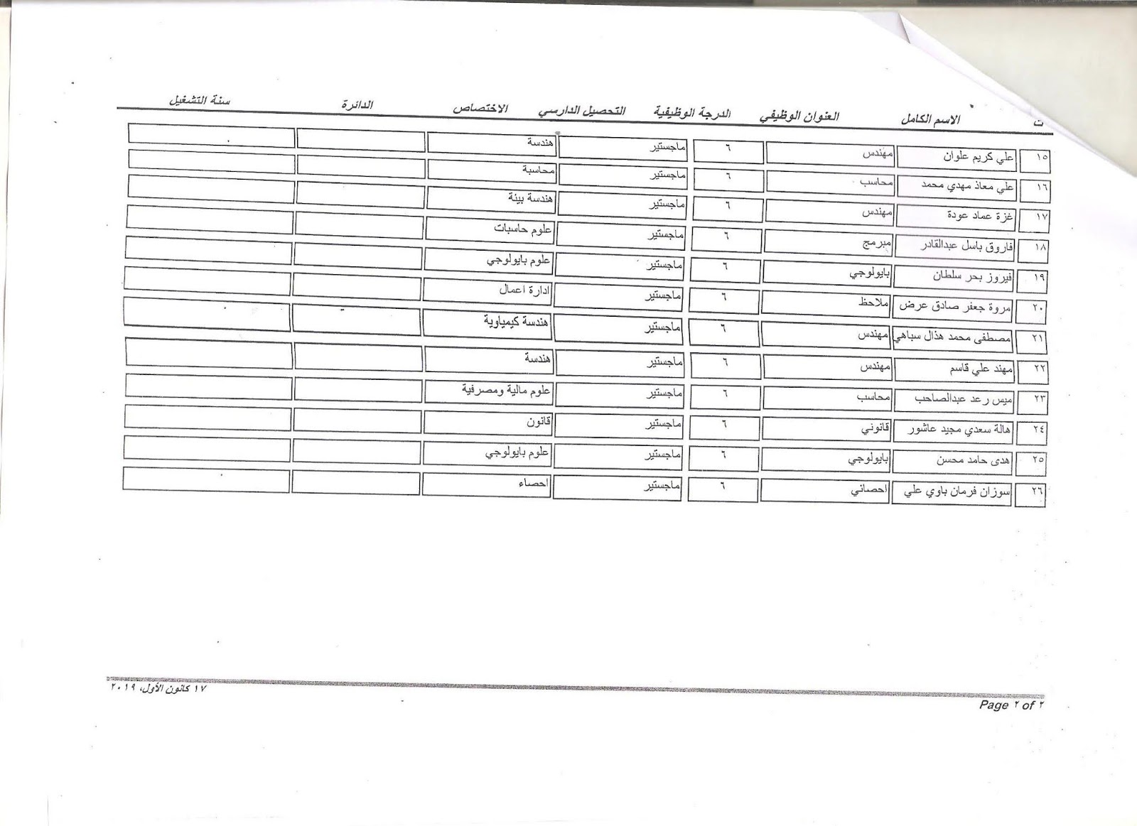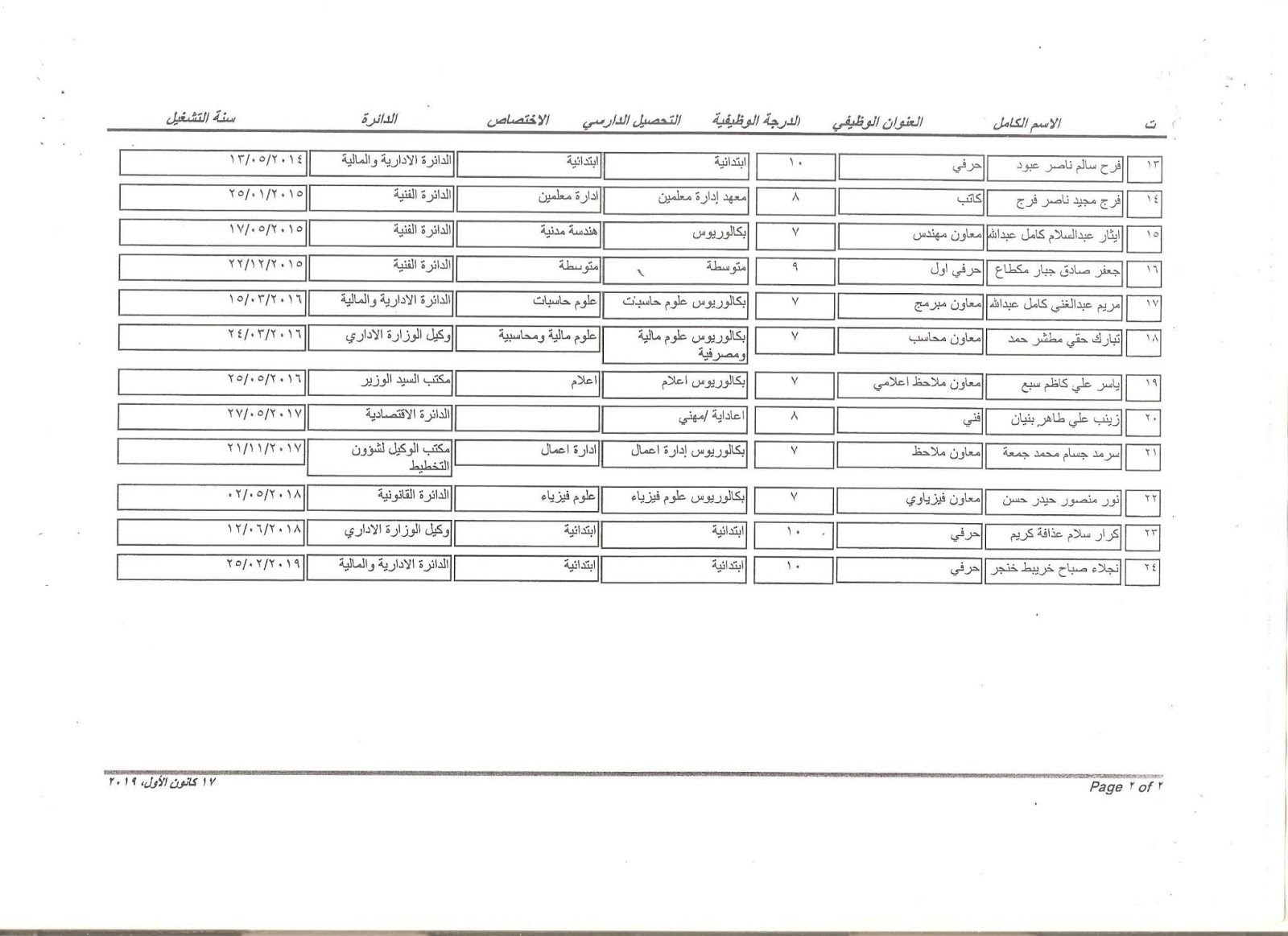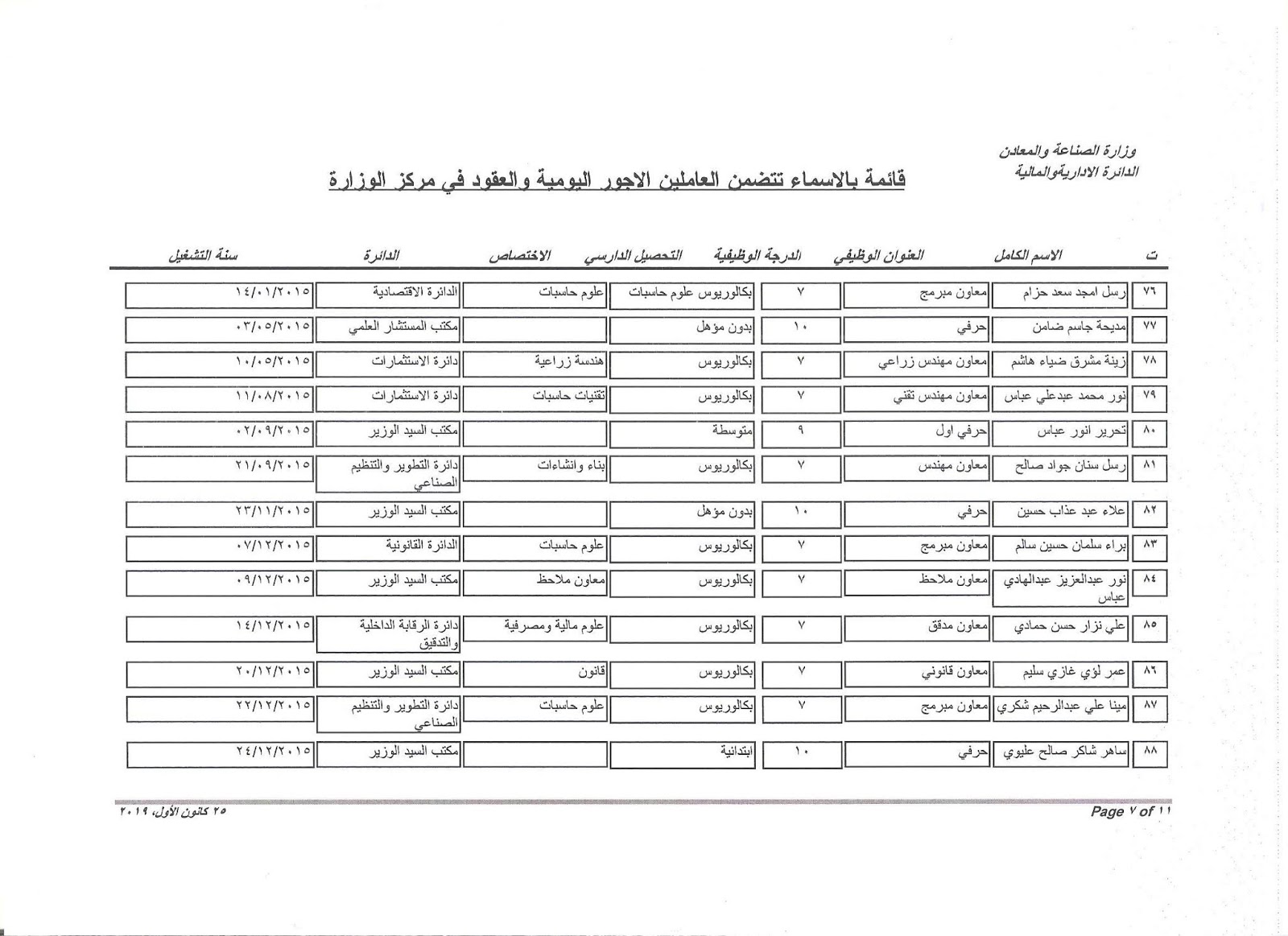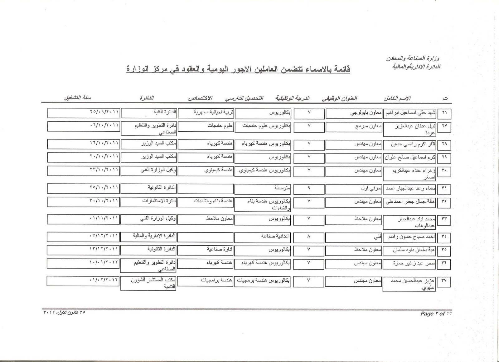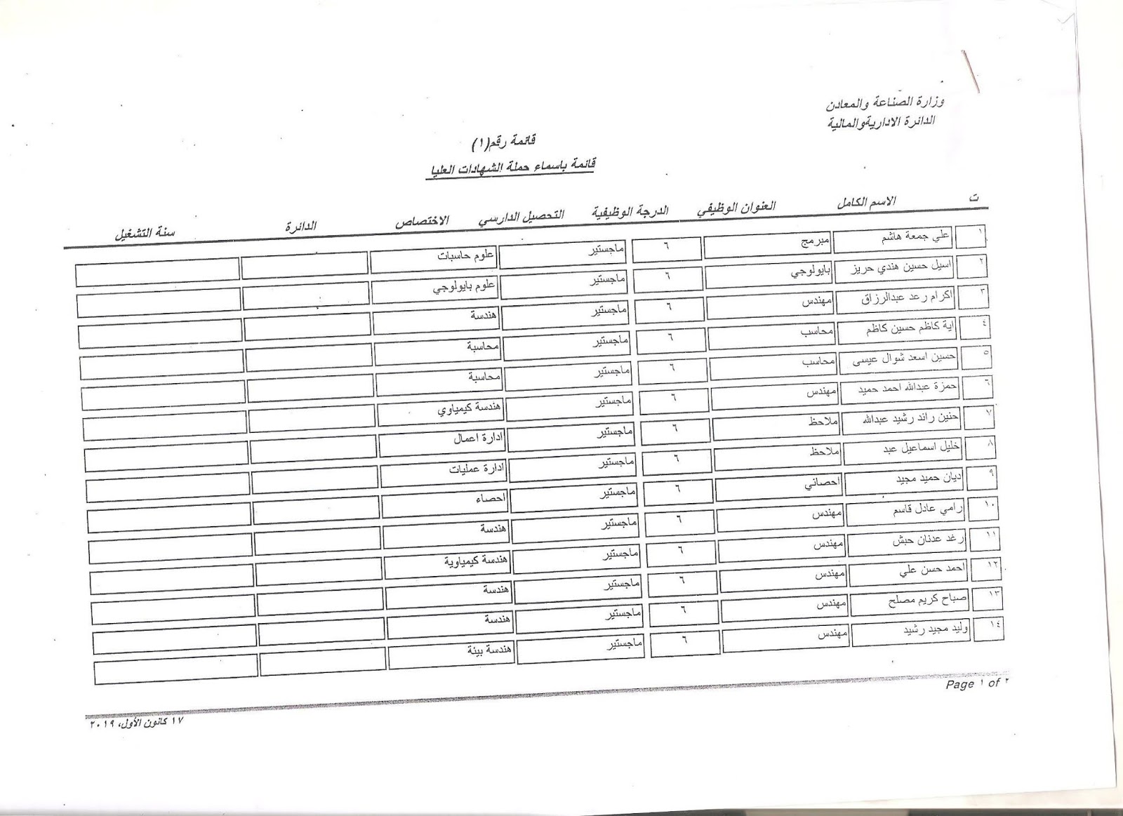 تعلن وزارة الصناعة والمعادن عن اسماء الفائزين بالتعيين على الملاك للدرجات الوظيفية التي اعلن عنها بتاريخ 11/3/2019 ولغاية 30/3/2019 وكما مدرجة في المرفقات أدناه :-