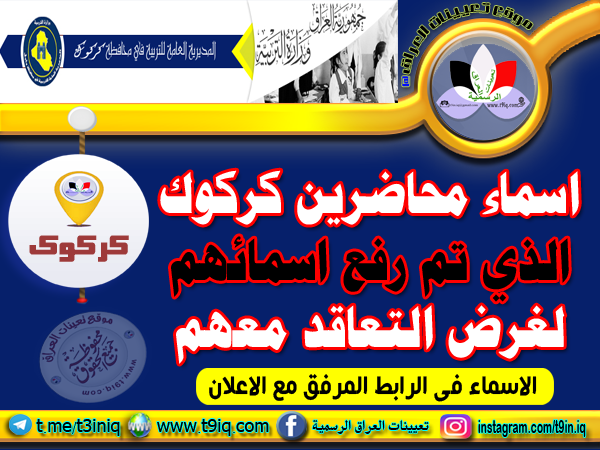 تعلن مديرية تربية كركوك عن اسماء المحاضرين الوجبة الثانية الذي تم رفع أسمائهم الى وزارة التربية لغرض التعاقد معهم وكما مدرجة ربطاً أدناه :-