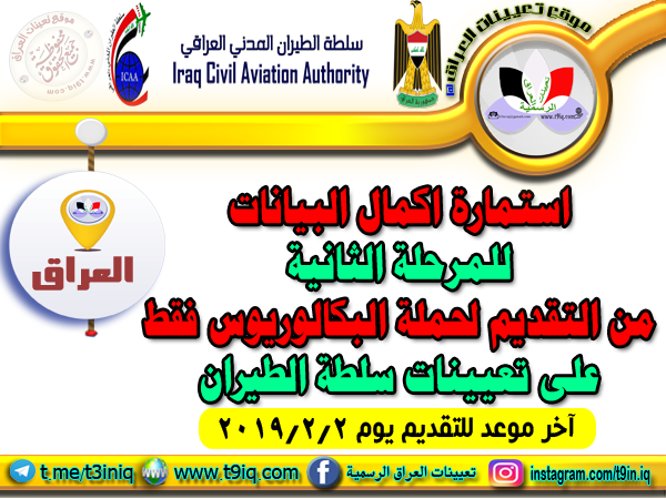 من اجل انسيابية المقابلات واستكمال البيانات المرسلة من قبل السادة والسيدات المتقدمين من حملة شهادة البكالوريوس على الدرجات الوظيفية الشاغرة في سلطة الطيران المدني العراقي ، يرجى إرسال المعلومات الخاصة بهم على الاستمارة المدرجة ربطاً أدناه :-