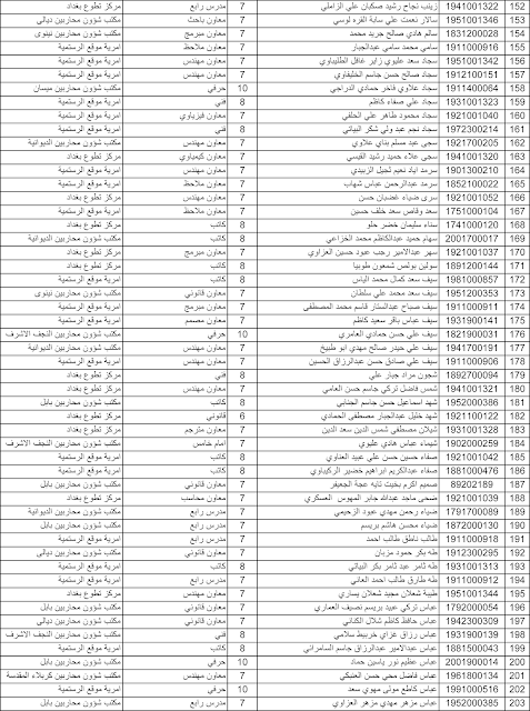 - انتهاء اعمال التدقيق والمطابقة الخاصة بهم مع وزارة المالية صدر الامر الاداري (278) الخاص بنقلهم الى الاماكن المؤشرة ازاء كل منهم حسب الجدول المرفق ادناه ويكون التحاقهم اعتباراً من يوم الاربعاء الموافق 12 شباط 2020 حتماً.