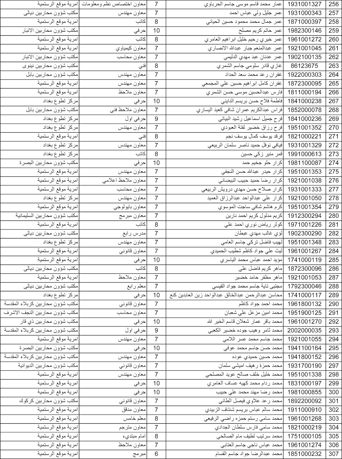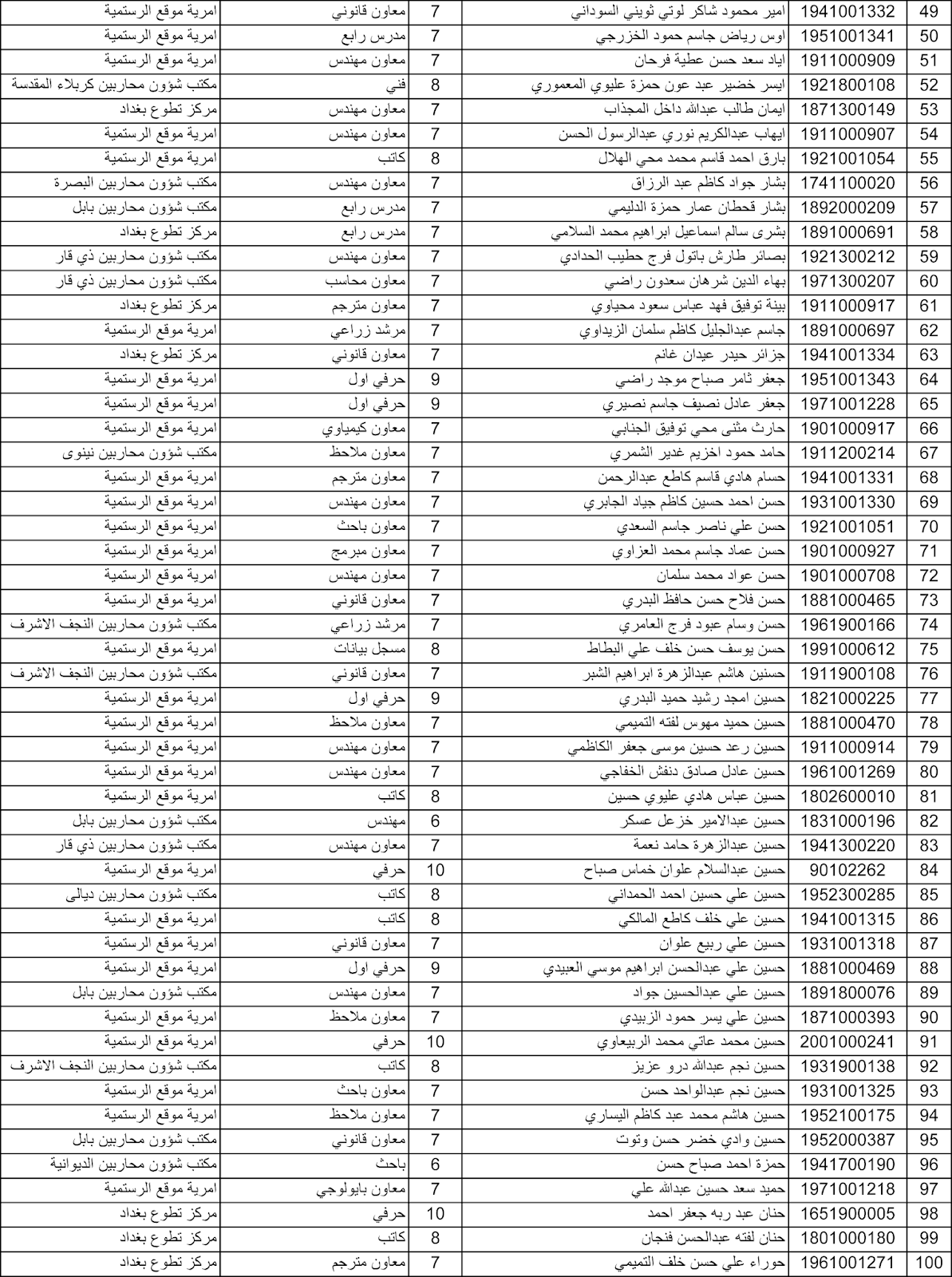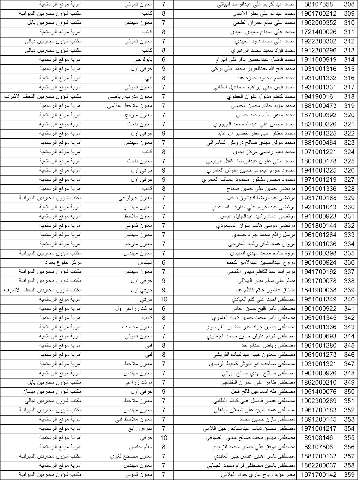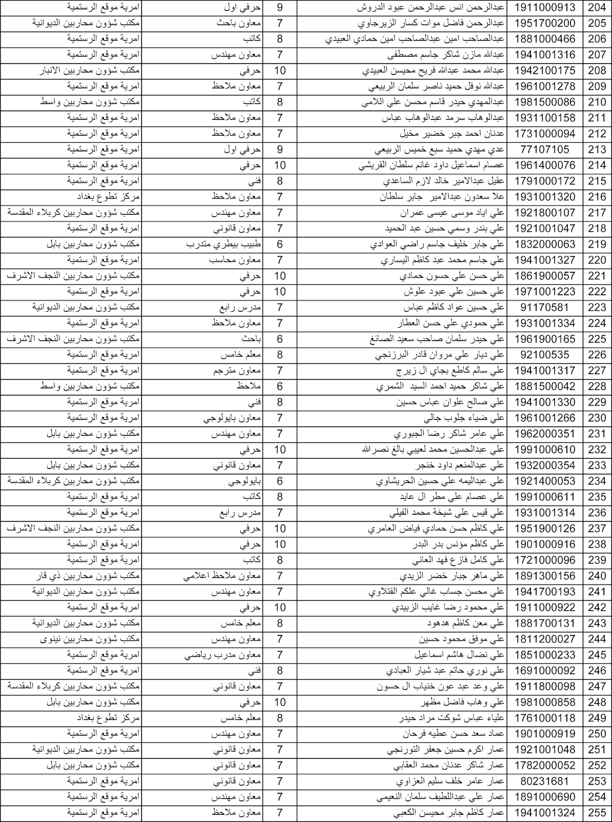 - انتهاء اعمال التدقيق والمطابقة الخاصة بهم مع وزارة المالية صدر الامر الاداري (278) الخاص بنقلهم الى الاماكن المؤشرة ازاء كل منهم حسب الجدول المرفق ادناه ويكون التحاقهم اعتباراً من يوم الاربعاء الموافق 12 شباط 2020 حتماً.