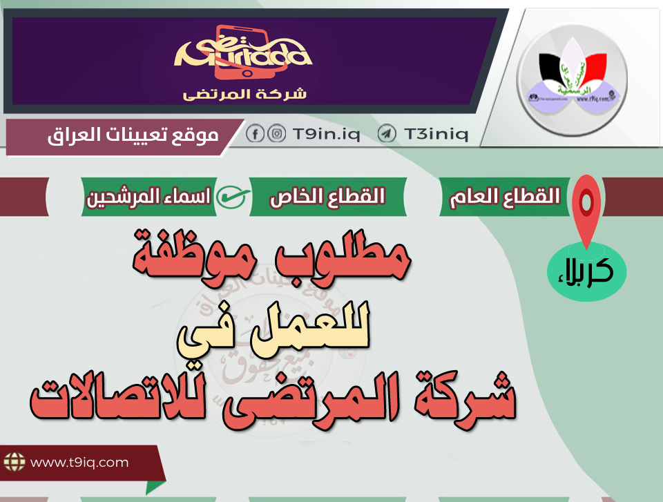 تعلن شركة المرتضى للاتصالات عن حاجتها الى موظفة في قسم الاكسسوارات وفقاً للمعلومات أدناه:-