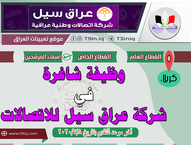 تعلن شركة عراق سيل للاتصالات عن توفر وظيفة شاغرة للعمل ضمن كادر الشركة وفقاً للتفاصيل المذكورة ادناه :-