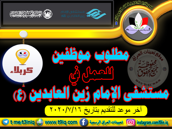 مطلوب موظفين للعمل في مستشفى الامام زين العابدين (عليه السلام) وفقاً للوظائف المذكورة أدناه :-