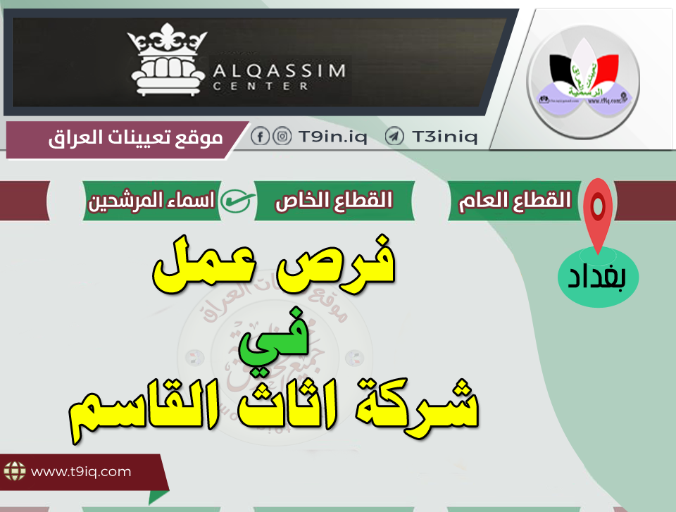 تعلن شركة اثاث القاسم عن توفير فرص عمل وفقاً للعناوين الوظيفية المذكورة أدناه :-