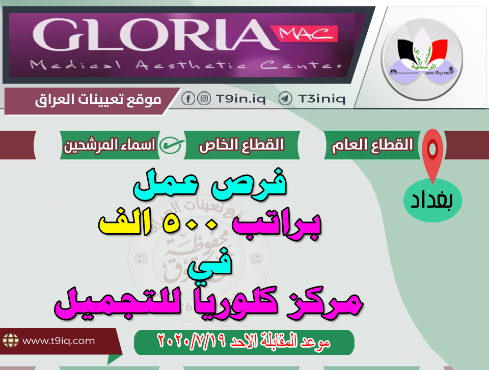 يعلن مركز كلوريا للتجميل عن توفر فرصة عمل براتب (500 الف) دينار وفقاً للتفاصيل المذكورة أدناه :-
