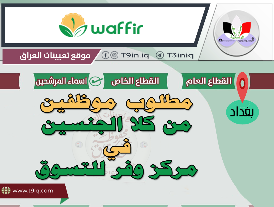 يعلن مركز وفر للتسوق عن حاجته إلى موظفين من كلا الجنسين للوظائف المدرجة ادناه :-