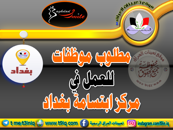 مطلوب موظفات للعمل في عيادات ابتسامة بغداد لطب التجميل والعناية بالبشرة وفقاً للشروط أدناه :-