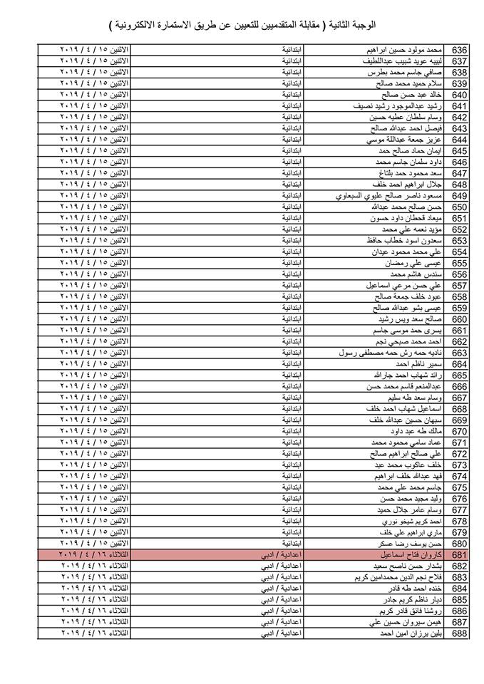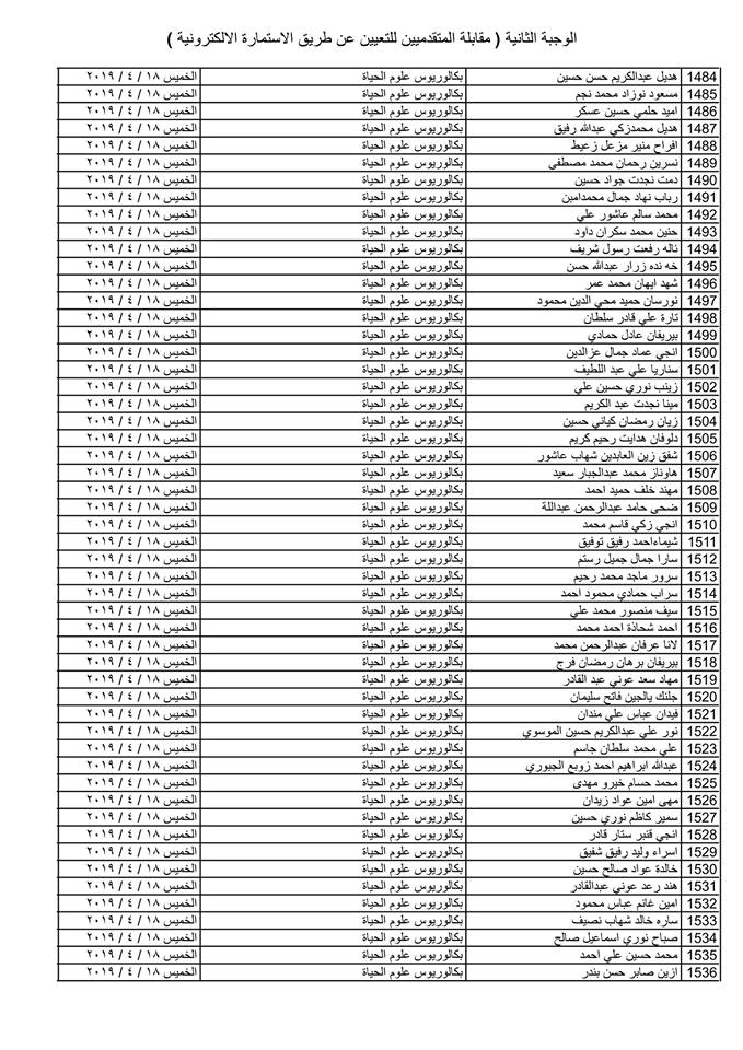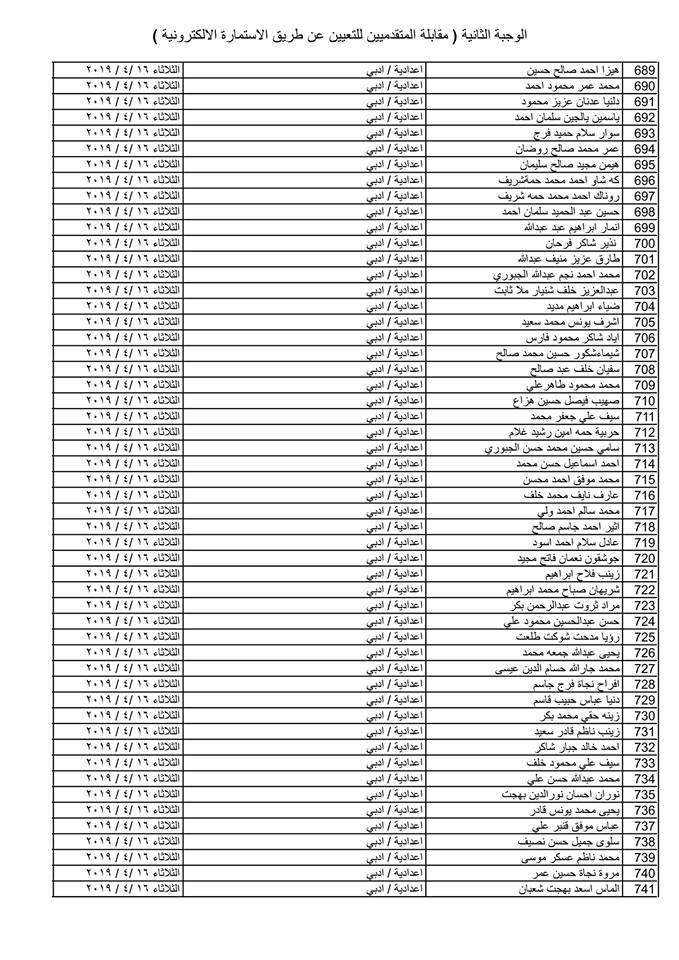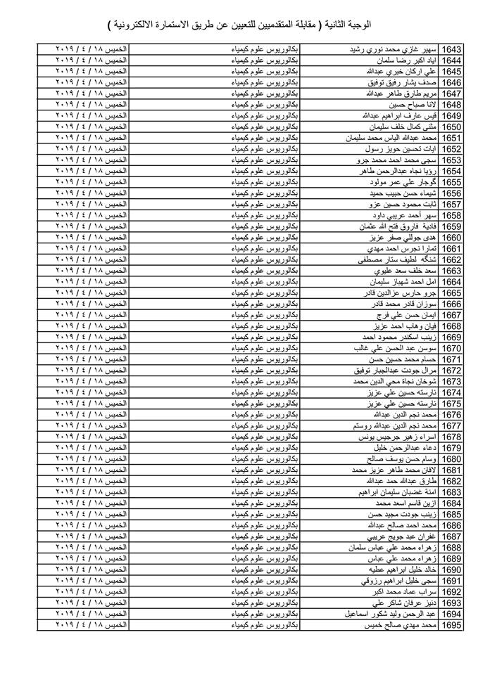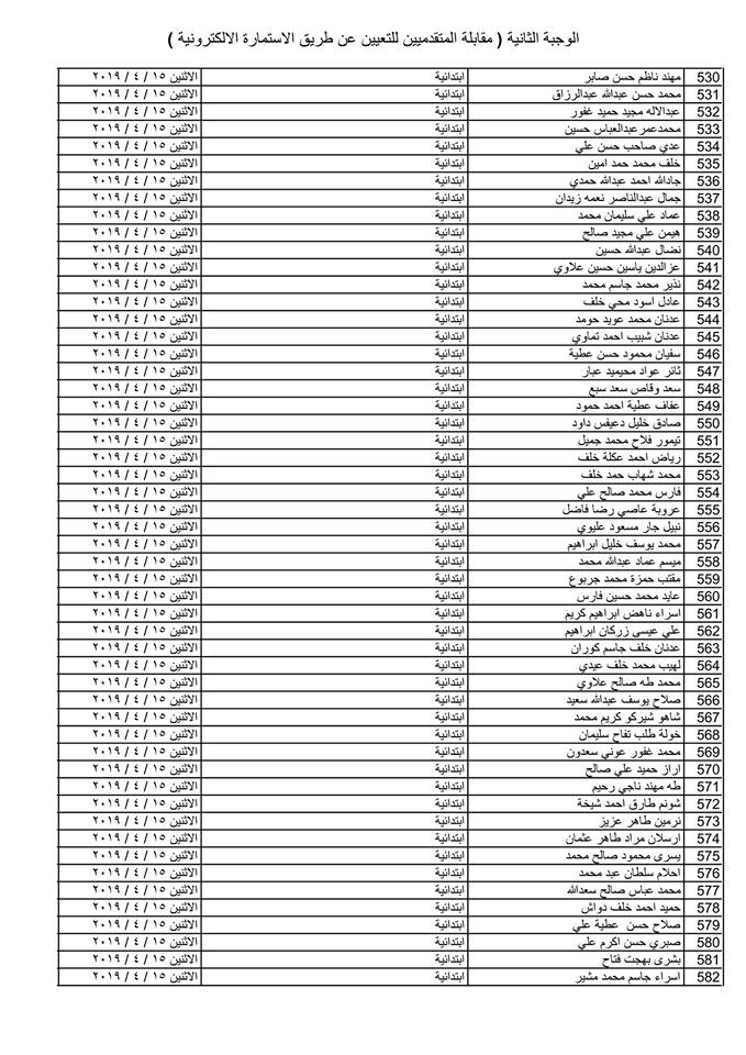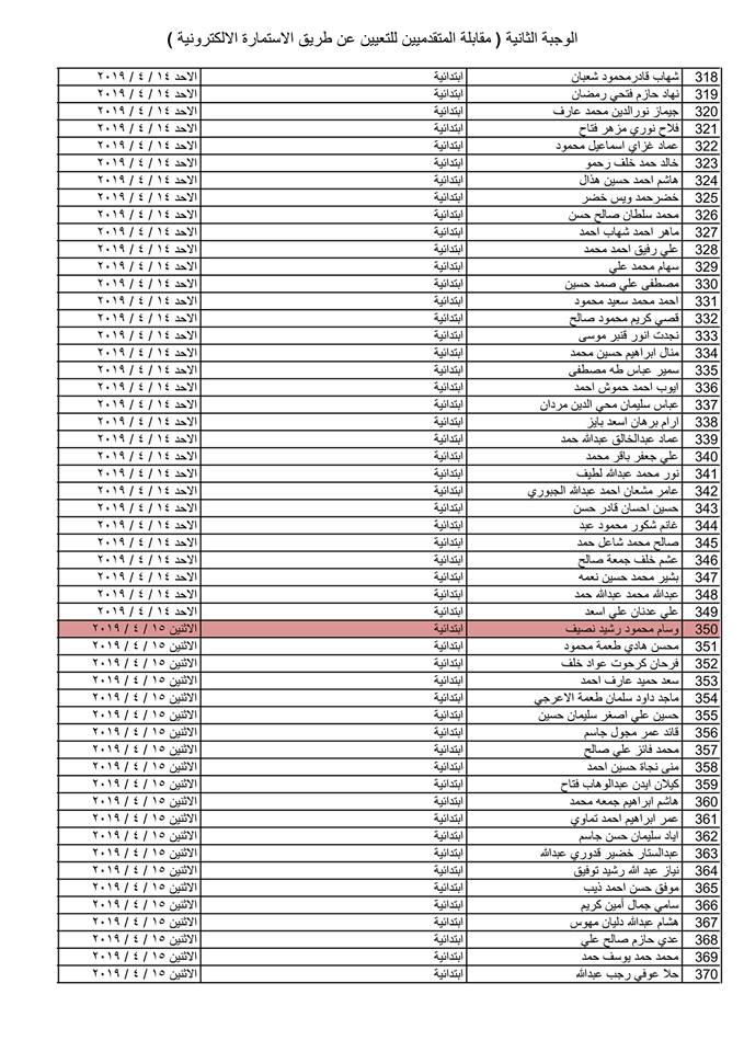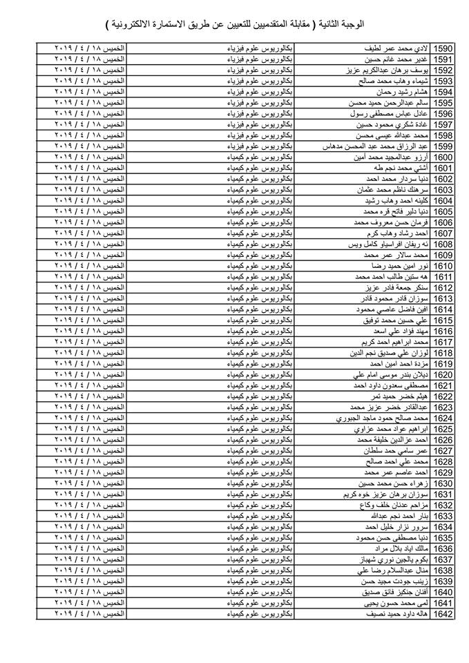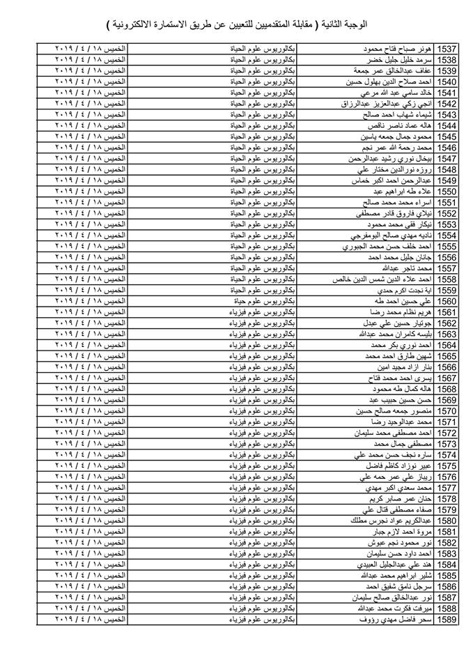 تدعو دائرة صحة كركوك الذوات المذكورة أسماؤهم وتسلسلاتهم وموعد المقابلة في القوائم المدرجة مع التفاصيل أدناه ( الوجبة الثانية ) الذين قدموا طلبات التعيين (الكترونيا) على ملاك دائرة صحة كركوك ممن يتوفر فيهم شروط التعيين لغرض إجراء المقابلة والاختبار الشفوي :-