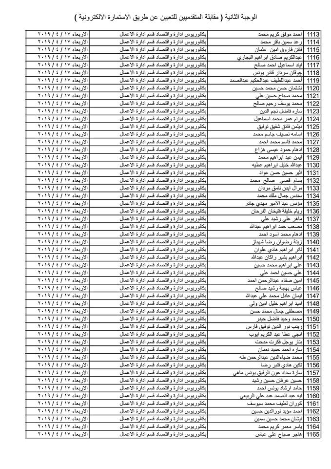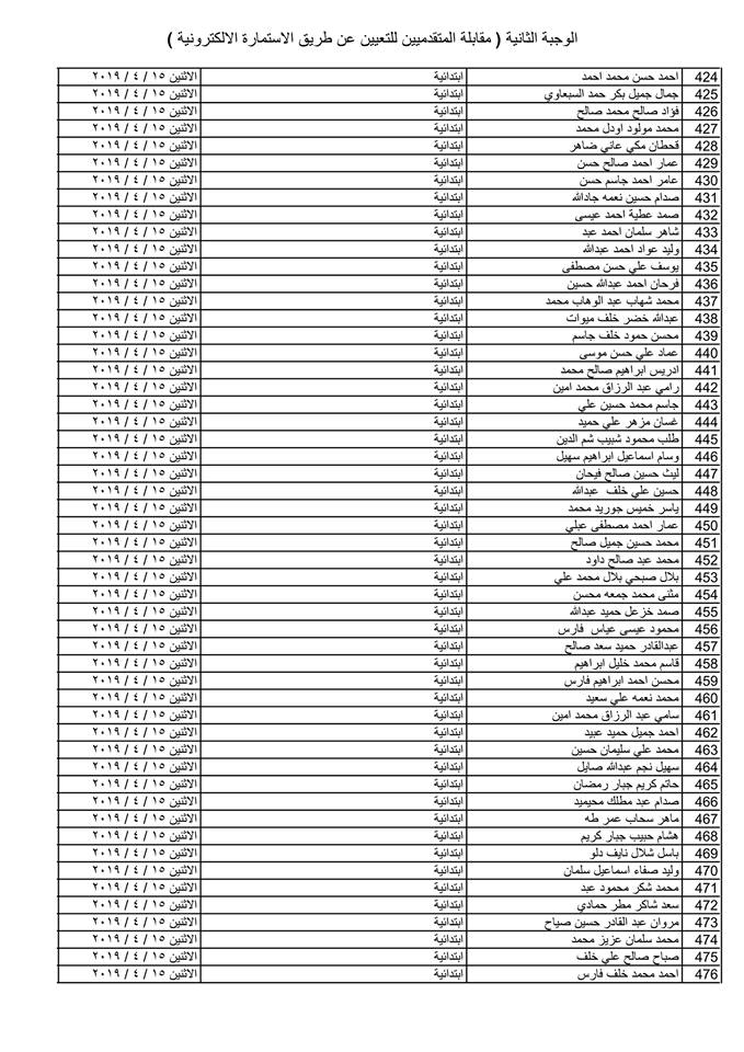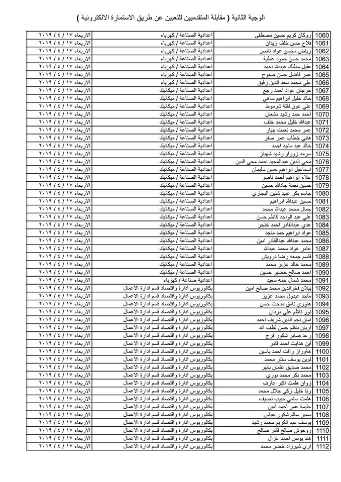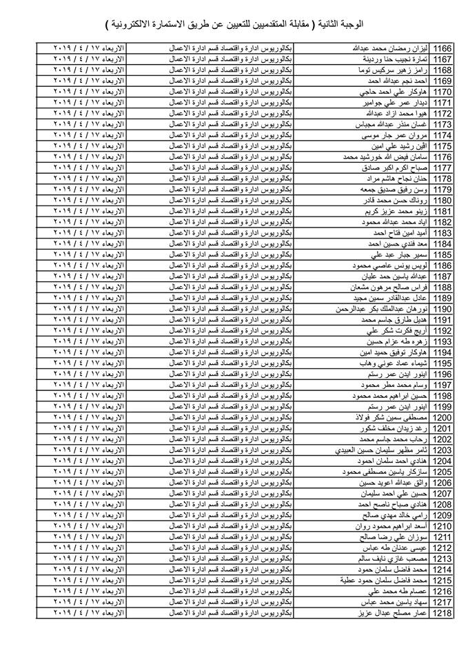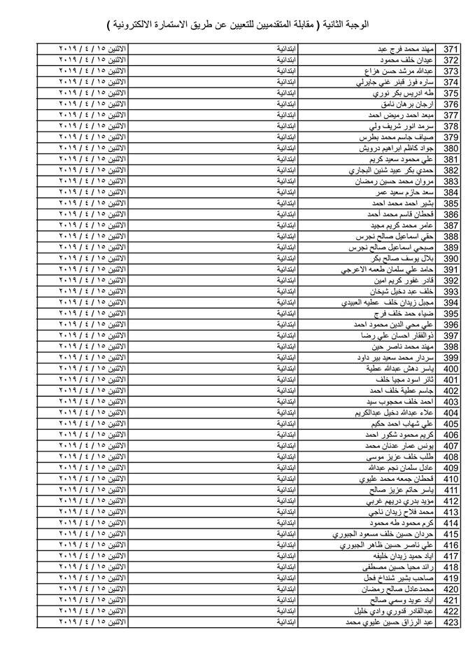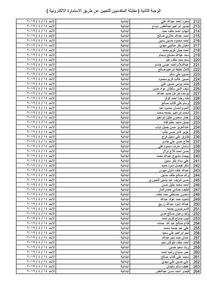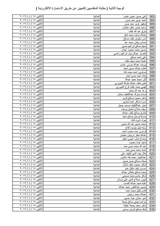 تدعو دائرة صحة كركوك الذوات المذكورة أسماؤهم وتسلسلاتهم وموعد المقابلة في القوائم المدرجة مع التفاصيل أدناه ( الوجبة الثانية ) الذين قدموا طلبات التعيين (الكترونيا) على ملاك دائرة صحة كركوك ممن يتوفر فيهم شروط التعيين لغرض إجراء المقابلة والاختبار الشفوي :-