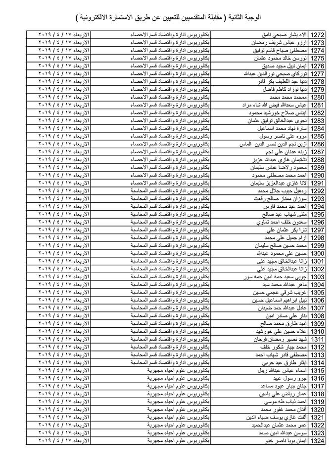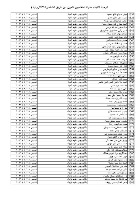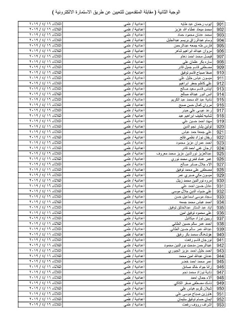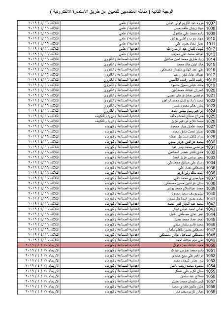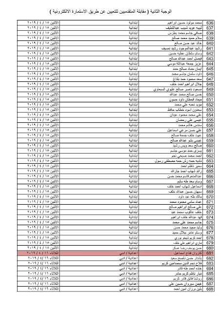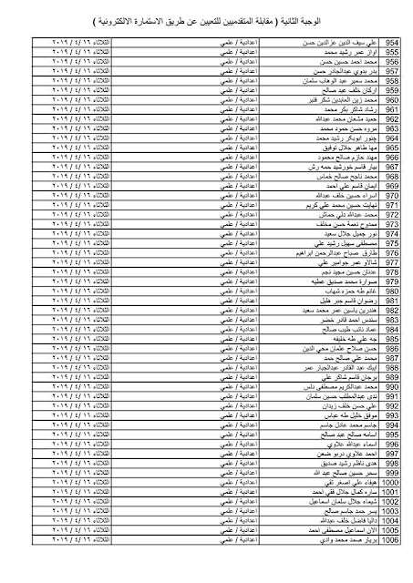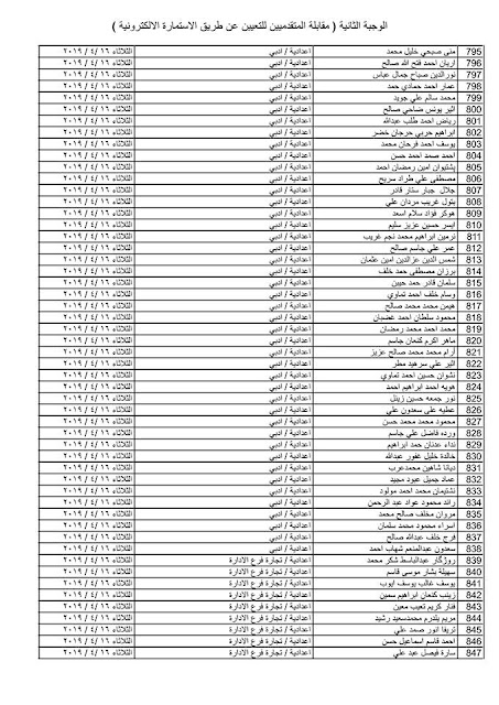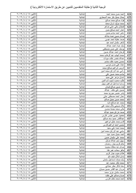 - يسقط حق كل من ورد اسمه في القوائم المنشورة في حال عدم حضوره للمقابلة في المكان والزمان المحددين .