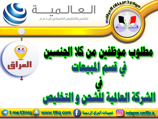 * الوظائف المطلوبة/ موظفين في قسم المبيعات في محافظتي (بغداد و البصرة) .