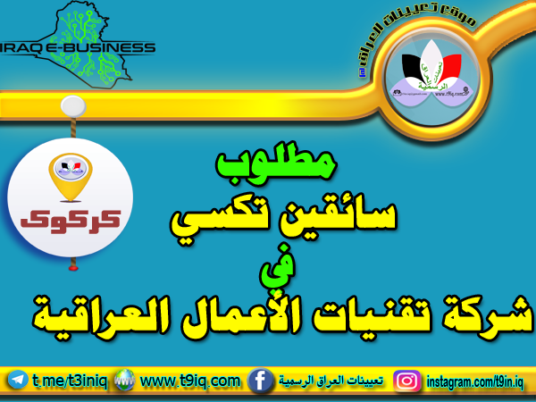 تعلن شركة تقنيات الأعمال العراقية عن حاجتها إلى سائقين تكسي للعمل في شركة تكسي جديدة في محافظة كركوك و ضواحيها وأقضيتها وفقاً للتفاصيل المدرجة أدناه :-