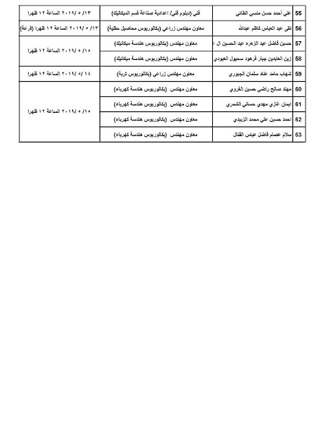 ثانيا/ على الذوات المدرجة اسماؤهم في القوائم المرفقة طياً ومن المرشحين للتعيين وحسب العناوين المطلوبة مراجعة مديريتنا لغرض إجراء الاختبار التحريري والمقابلة وحسب التواريخ المحددة لكل قائمة .