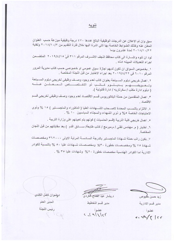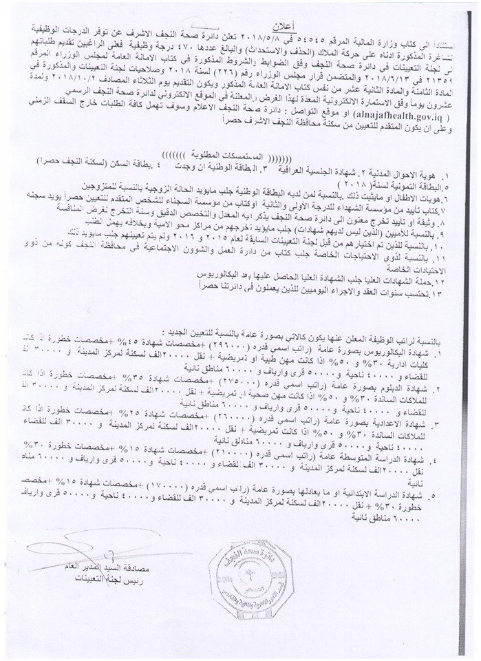 وظائف العراق عاجل .. اسماء المتقدمين للتعيين على ملاك دائرة صحة النجف الاشرف 2019