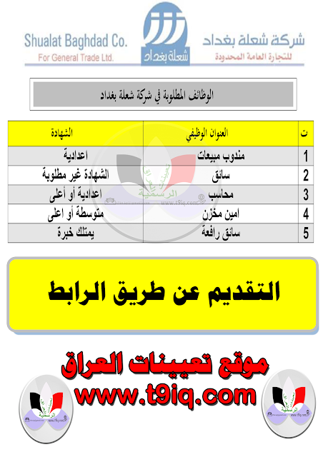فرص عمل في شركة شعلة بغداد وفقاً للوظائف المدرجة في المرفق أدناه :-