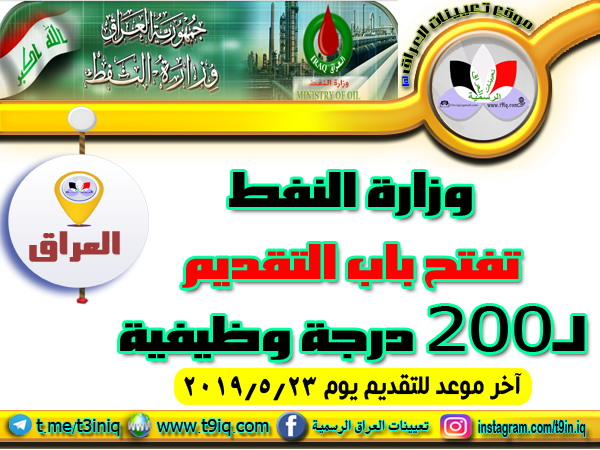 تعلن وزارة النفط عن فتح باب التقديم لـ 200 درجة وظيفية وفقاً للتفاصيل والاختصاصات المذكورة أدناه :-